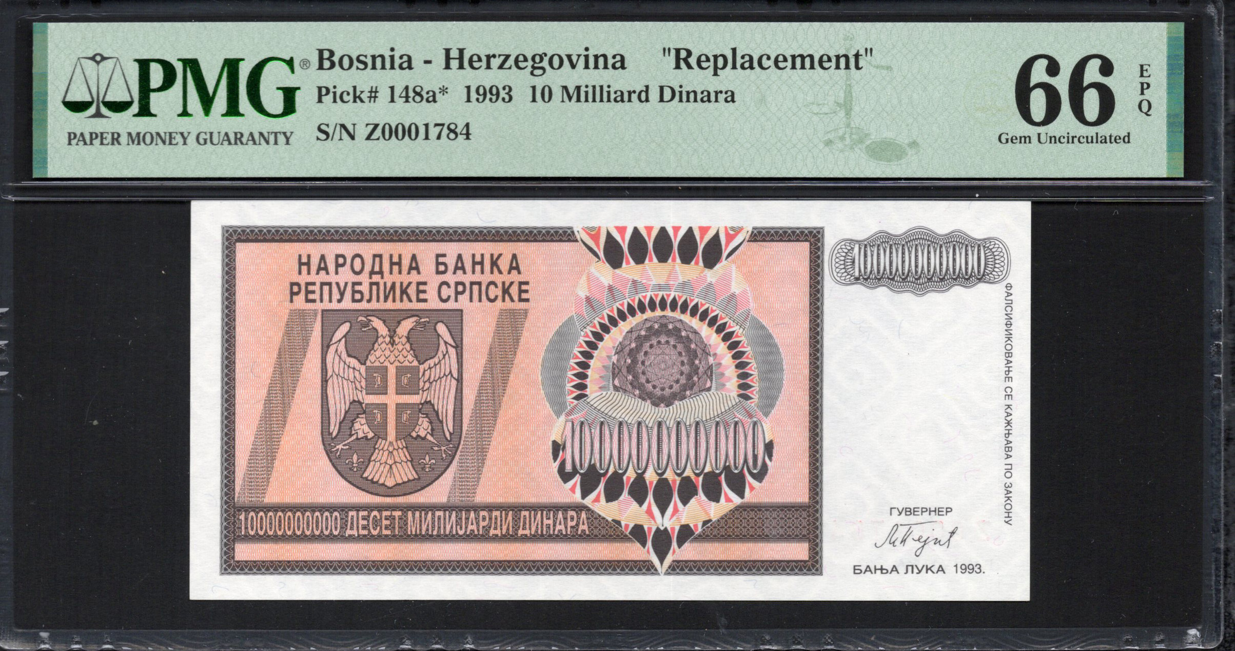 Bosnia and Herzegovina - 10 Milliard Dinara 1993 - Pick # 148a* - PMG 66 EPQ