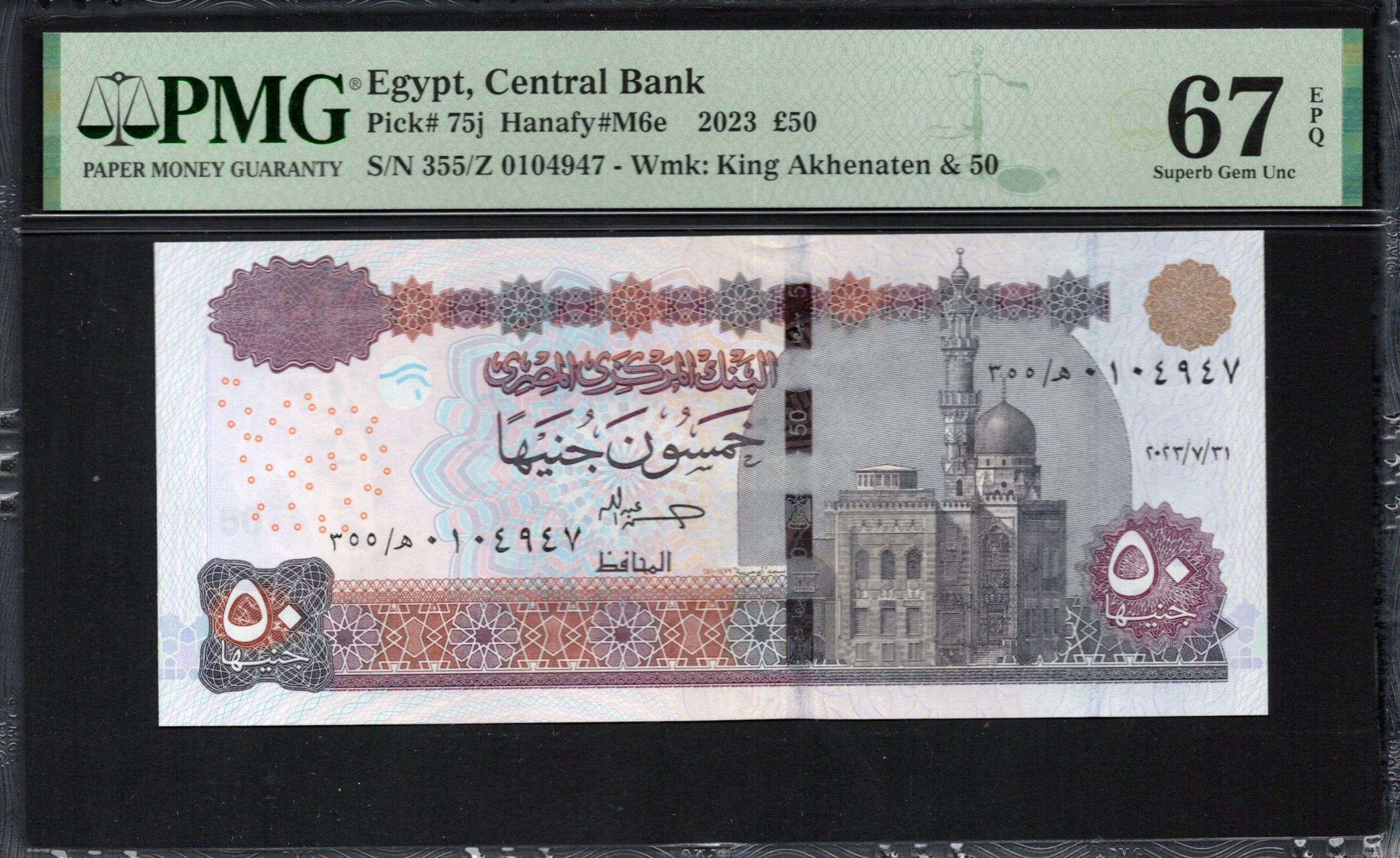 Egypt - 50 Pounds 2023 - Pick # 75j - PMG 67 EPQ