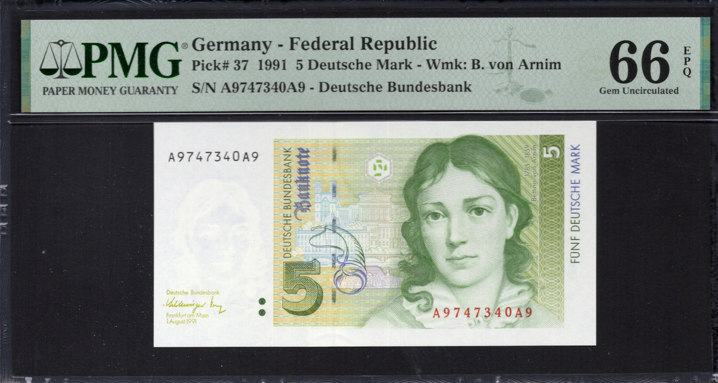 Germany - 5 Deutsche Mark 1991 - Pick # 37 - PMG 66 EPQ