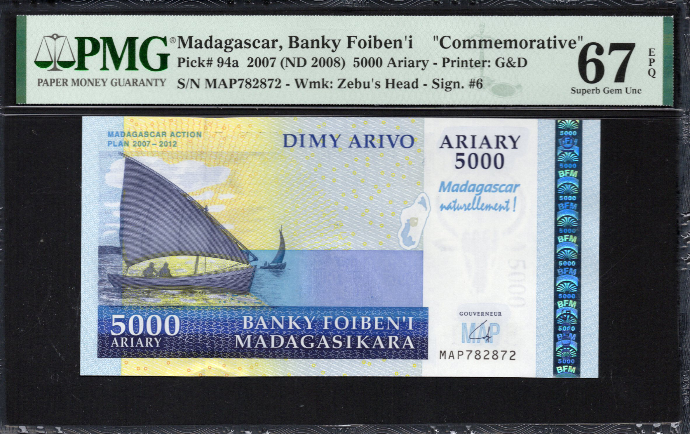 Madagascar - 5000 Ariary 2007 - Pick # 94a - PMG 67 EPQ