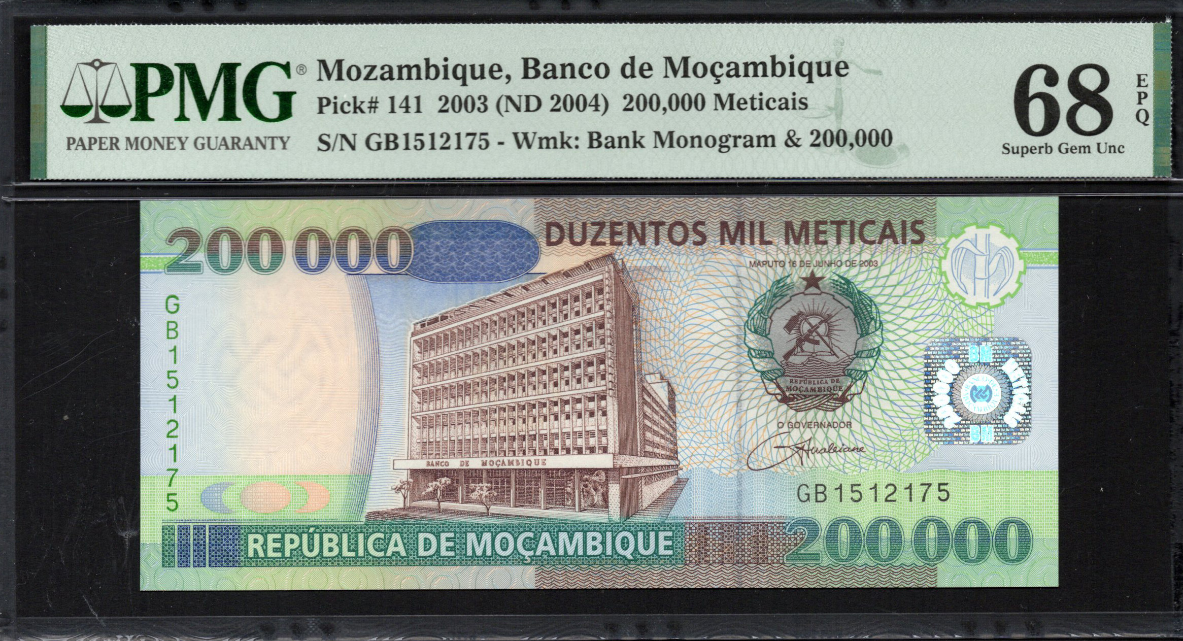 Der 200.000 Meticais-Schein aus Mosambik, der 2003 herausgegeben wurde, zeigt eine Mischung aus historischen und kulturellen Elementen, die für das Land einzigartig sind. Mit lebhaften Farben und komplizierten Designs ist dieser Schein ein Beweis für das reiche Erbe und die wirtschaftlichen Ambitionen Mosambiks. Der Schein enthält wichtige Sicherheitsmerkmale wie Wasserzeichen und Mikroschrift, die die Authentizität gewährleisten und Fälschungen vorbeugen. Bemerkenswerte visuelle Elemente, wie die Darstellung eines wichtigen Gebäudes, symbolisieren den Fortschritt und die Regierungsführung des Landes. Dieser Schein dient nicht nur als gesetzliches Zahlungsmittel, sondern auch als Repräsentation der Identität Mosambiks.