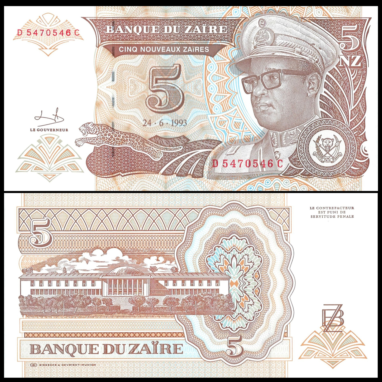 Zaire - 5 Nouveaux Zaires 1993 - Pick # 53