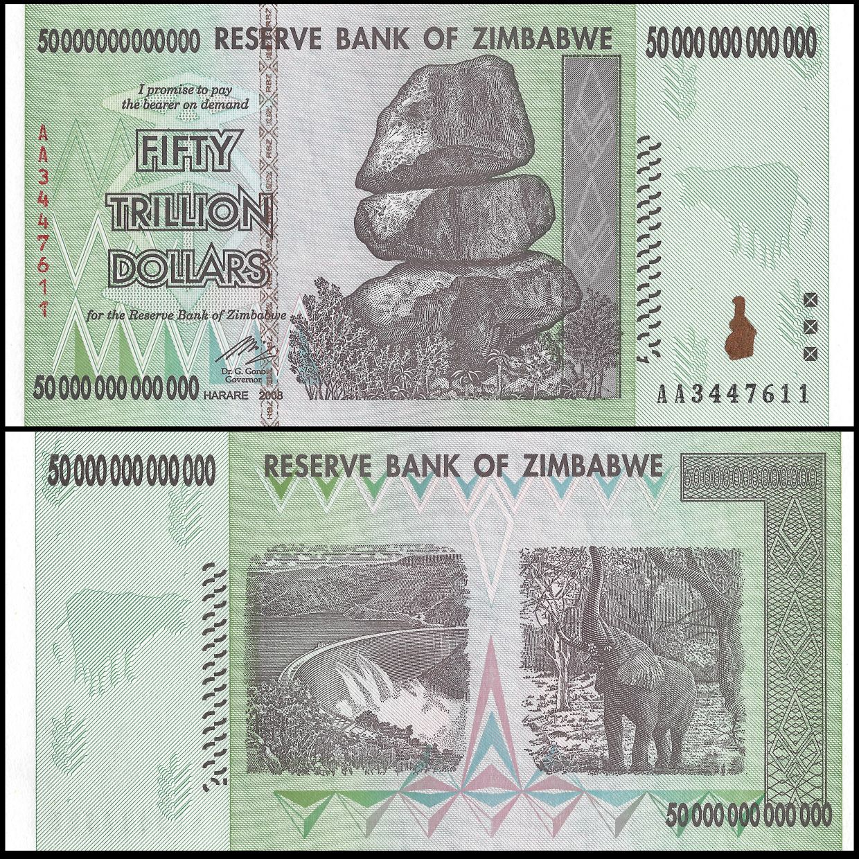 Zimbabwe - 50 Trillion Dollars 2008 - Pick- 90 / B181