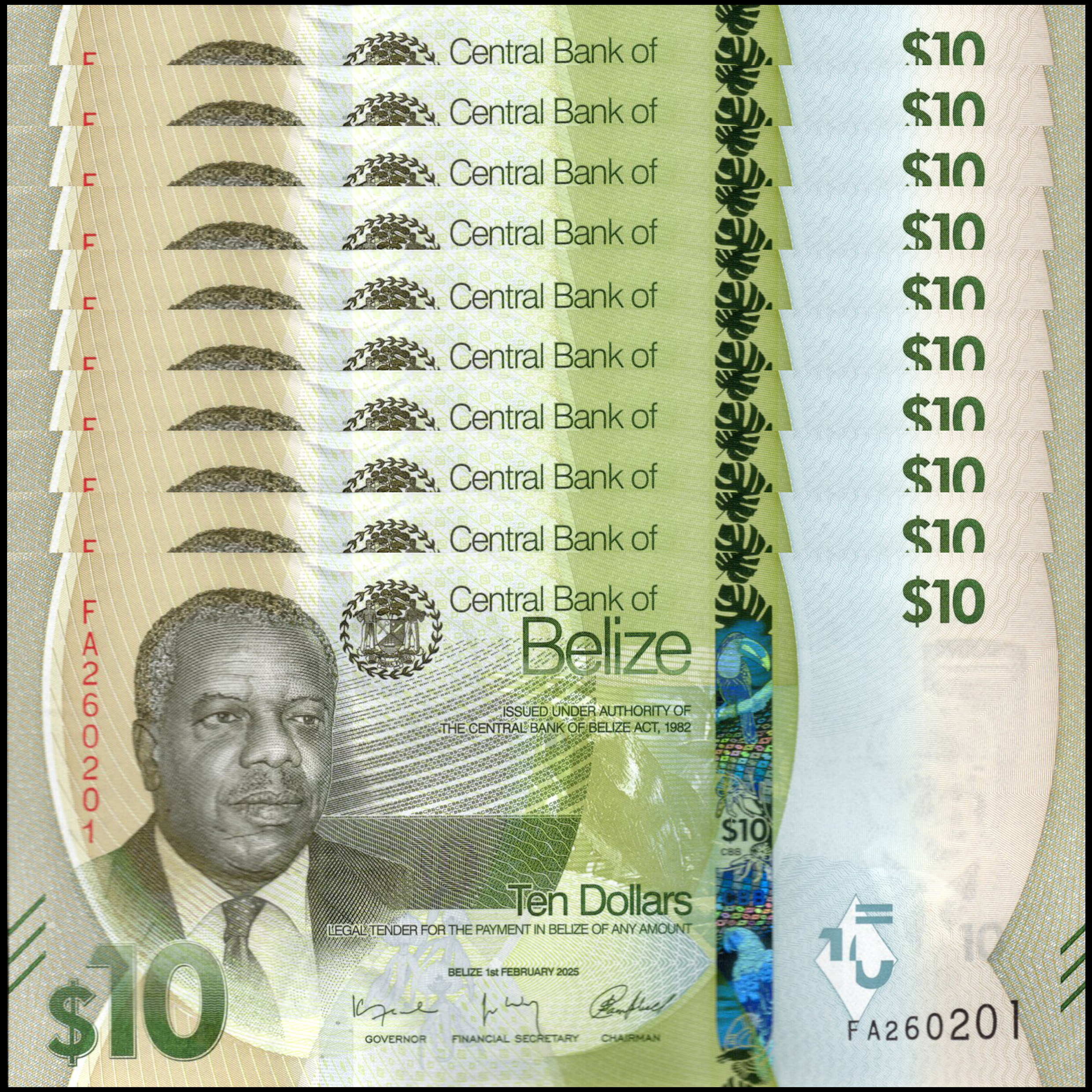 Belize - 10 Dollars 2025 - Pick # NEW - Set 10 PCS