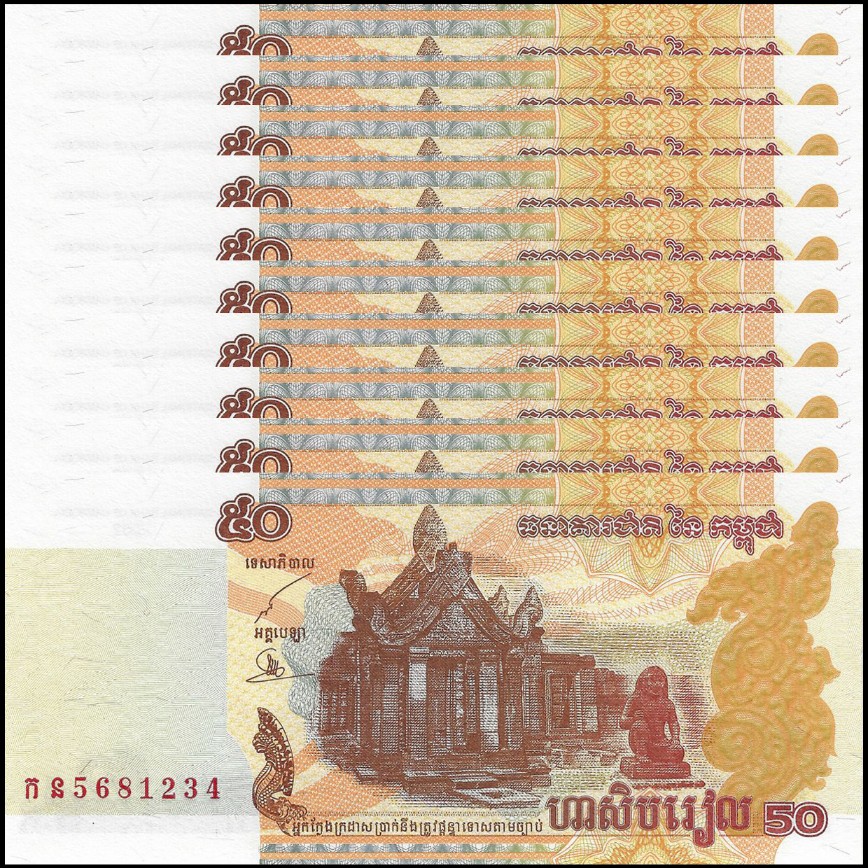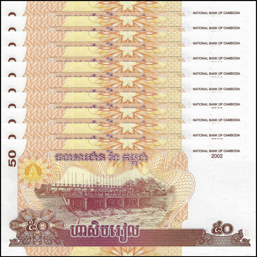 Cambodia - 50 Riels 2002 - Pick # 52 - Set 10 PCS
