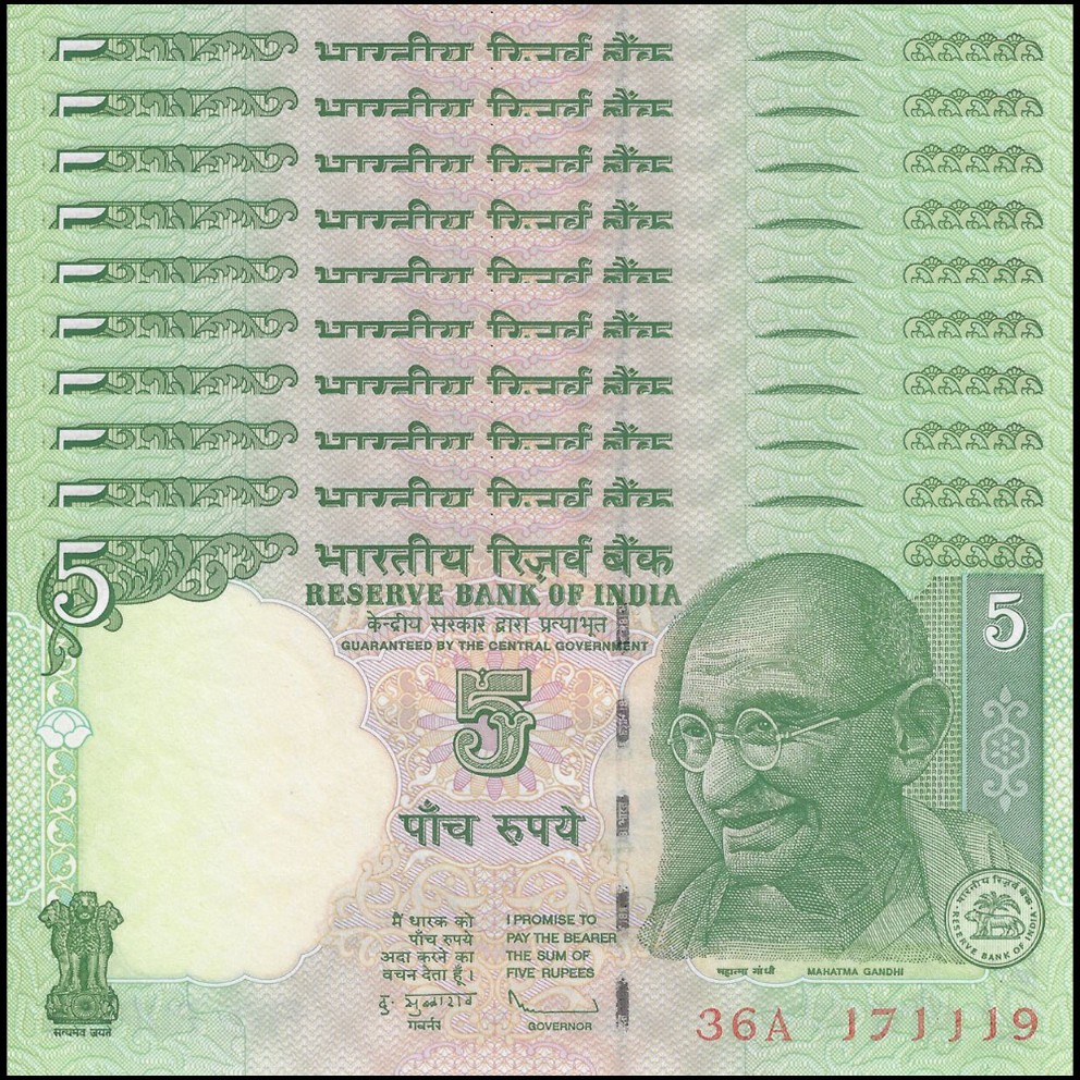 India - 5 Rupees 2010 - Pick # 94Ac - Set 10 PCS