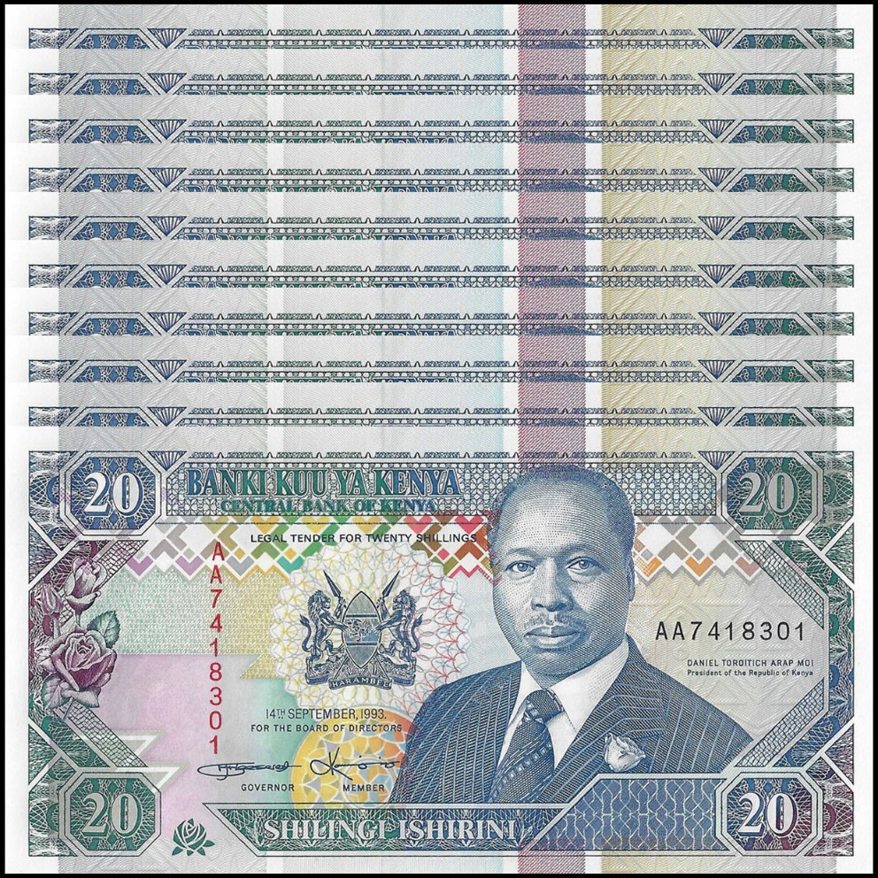Kenya - 20 Shillings 1993 - Pick- 31a / B131a - Set 10 PCS