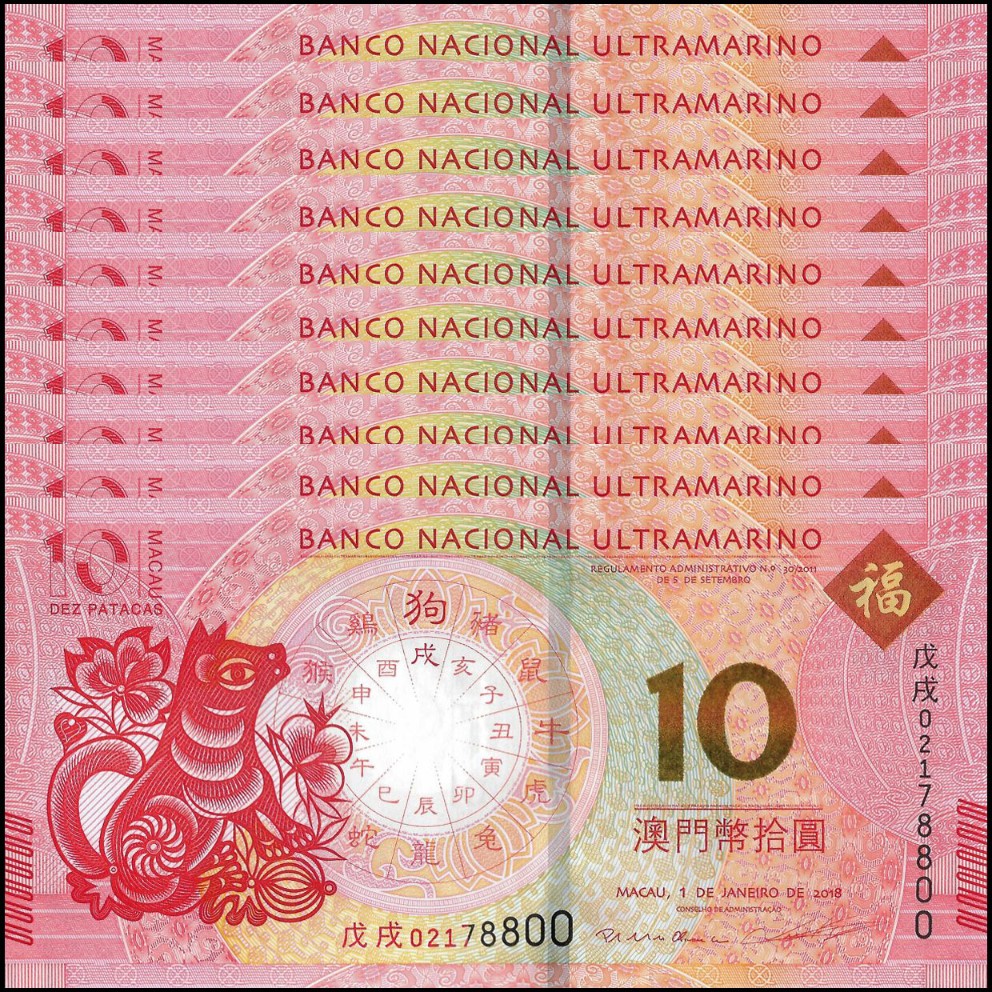 Macau - 10 Patacas 2018 - Pick- 88C / B080 - COMMEMORATIVE - Set 10 PCS