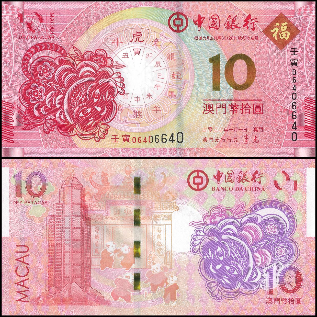 Macau - 10 Patacas 2012 - Pick- 115 / B219 - COMMEMORATIVE - Set 10 PCS