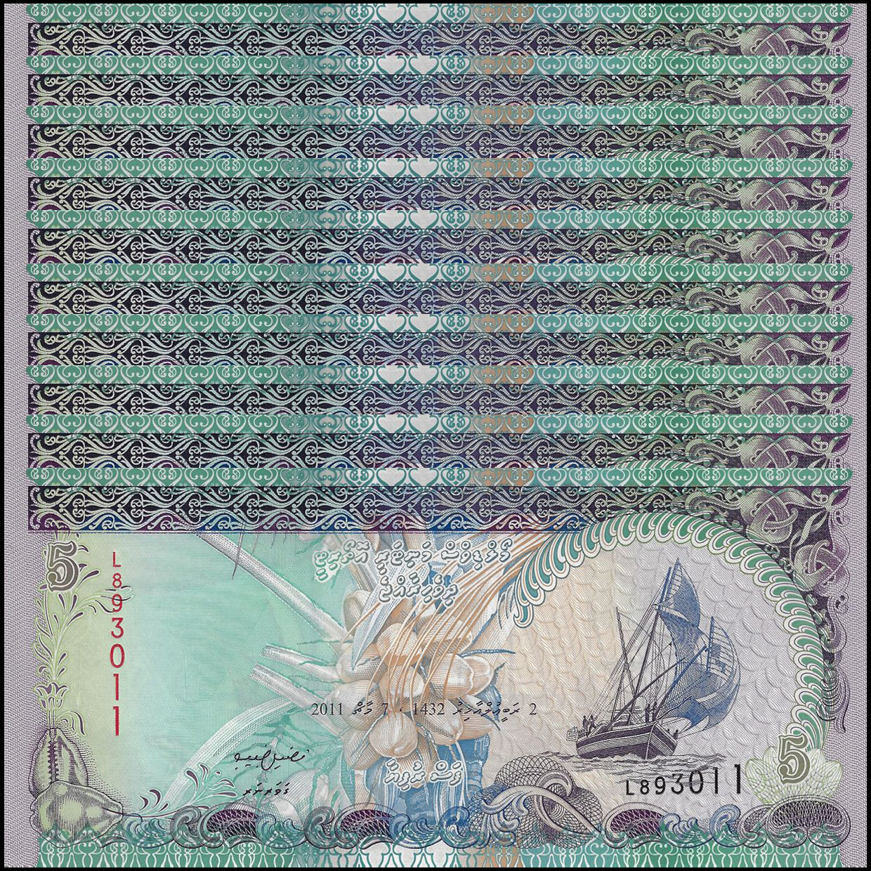Maldives - 5 Rufiyaa 2011 - Pick- 18e - Set 10 PCS