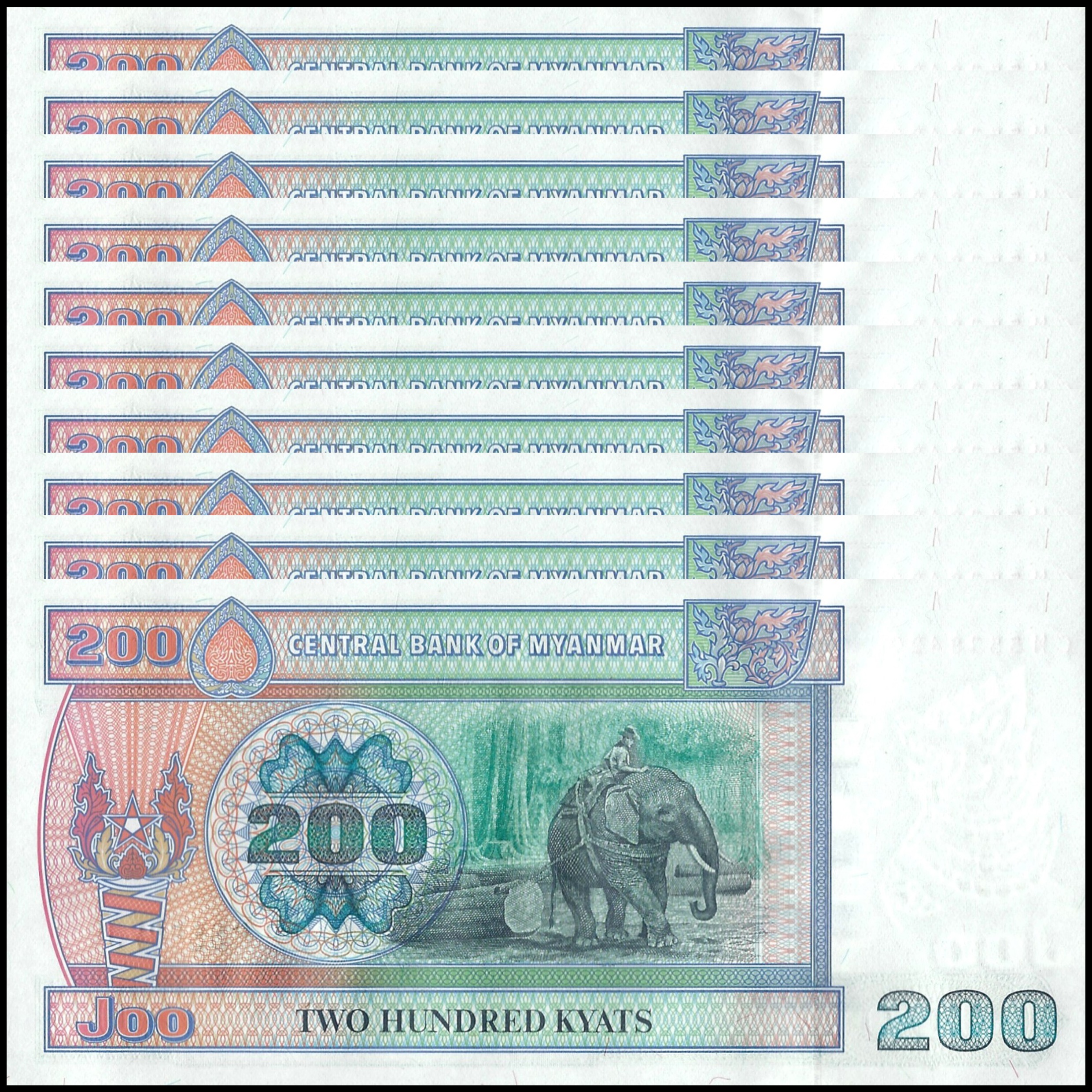 Myanmar - 200 Kyats 1995 - Pick # 75b - Set 10 PCS