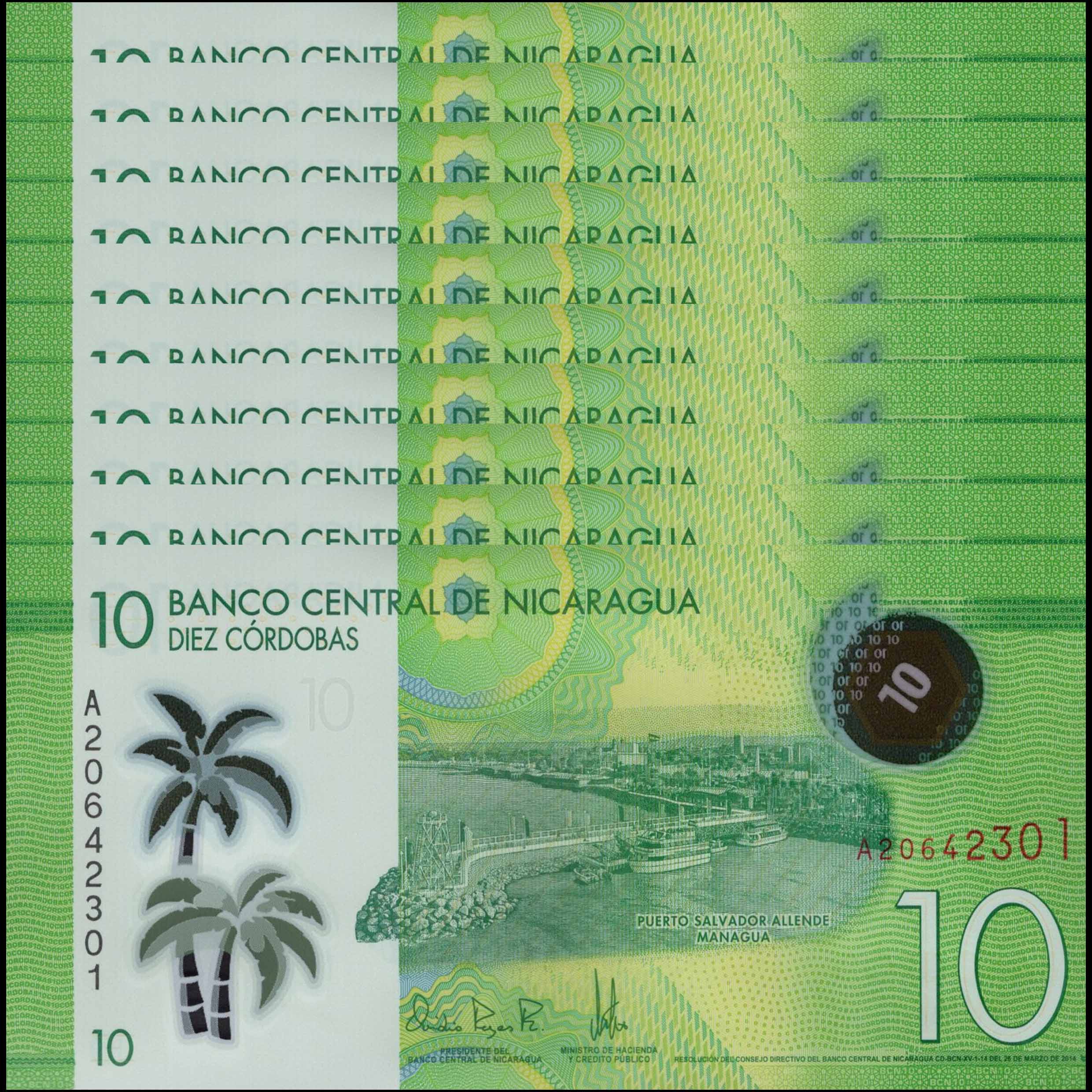 Nicaragua - 10 Cordobas 2014 - Pick # 209a - Set 10 PCS