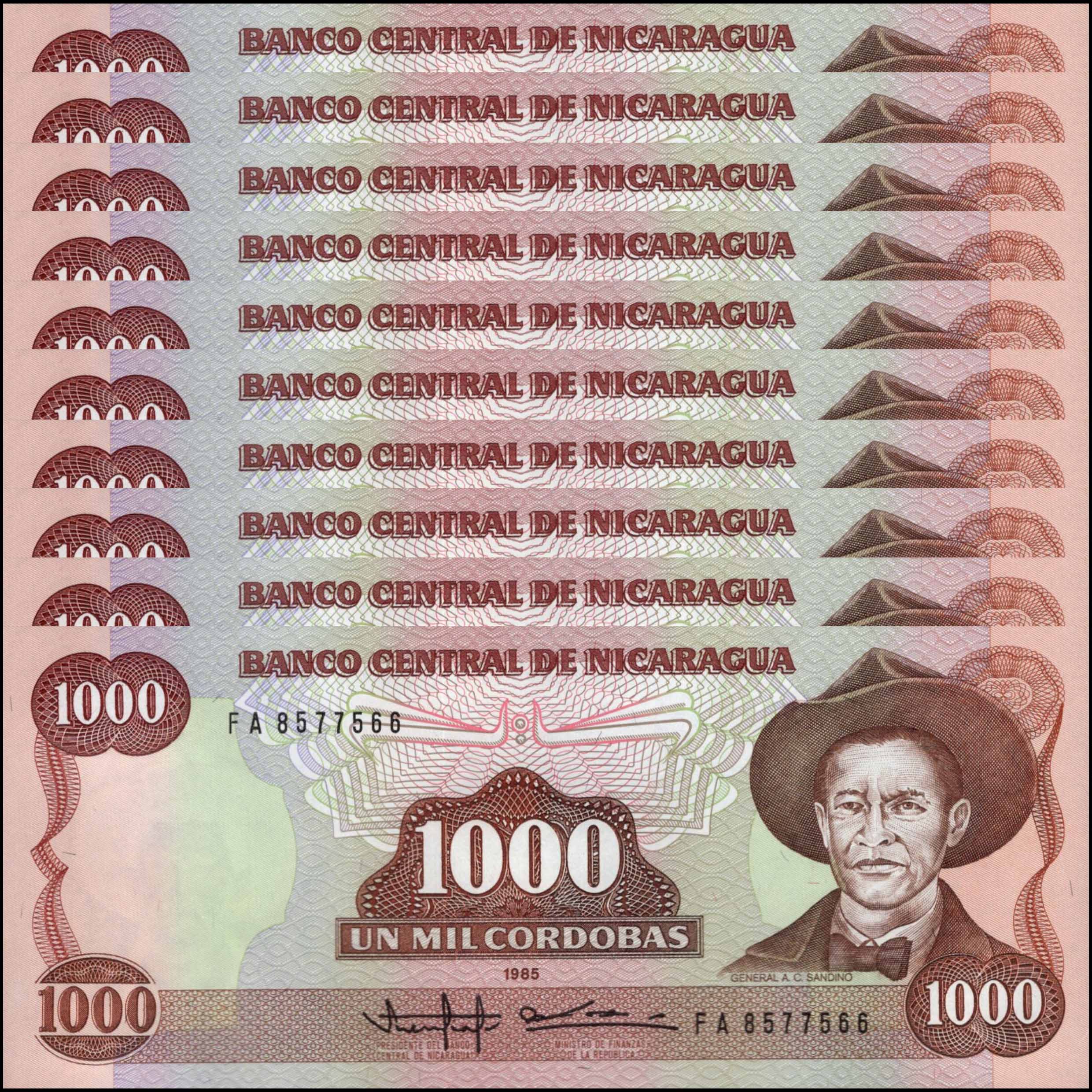 Nicaragua - 1000 Cordobas 1985 - Pick # 156a - Set 10 PCS