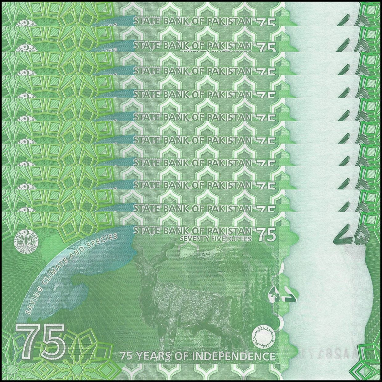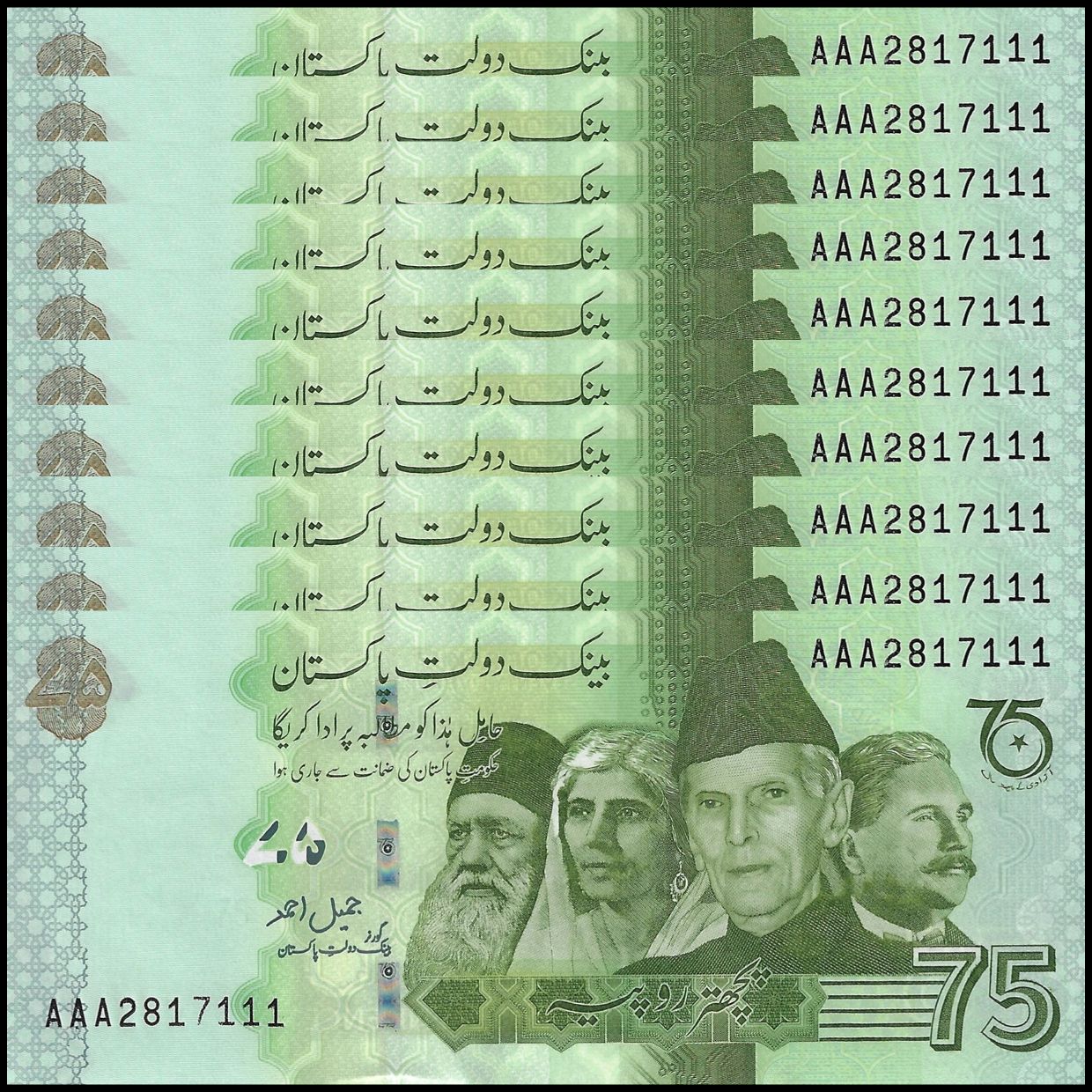 Pakistan - 75 Rupees 2022 - Pick- NEW / B240 - COMMEMORATIVE - Set 10 PCS