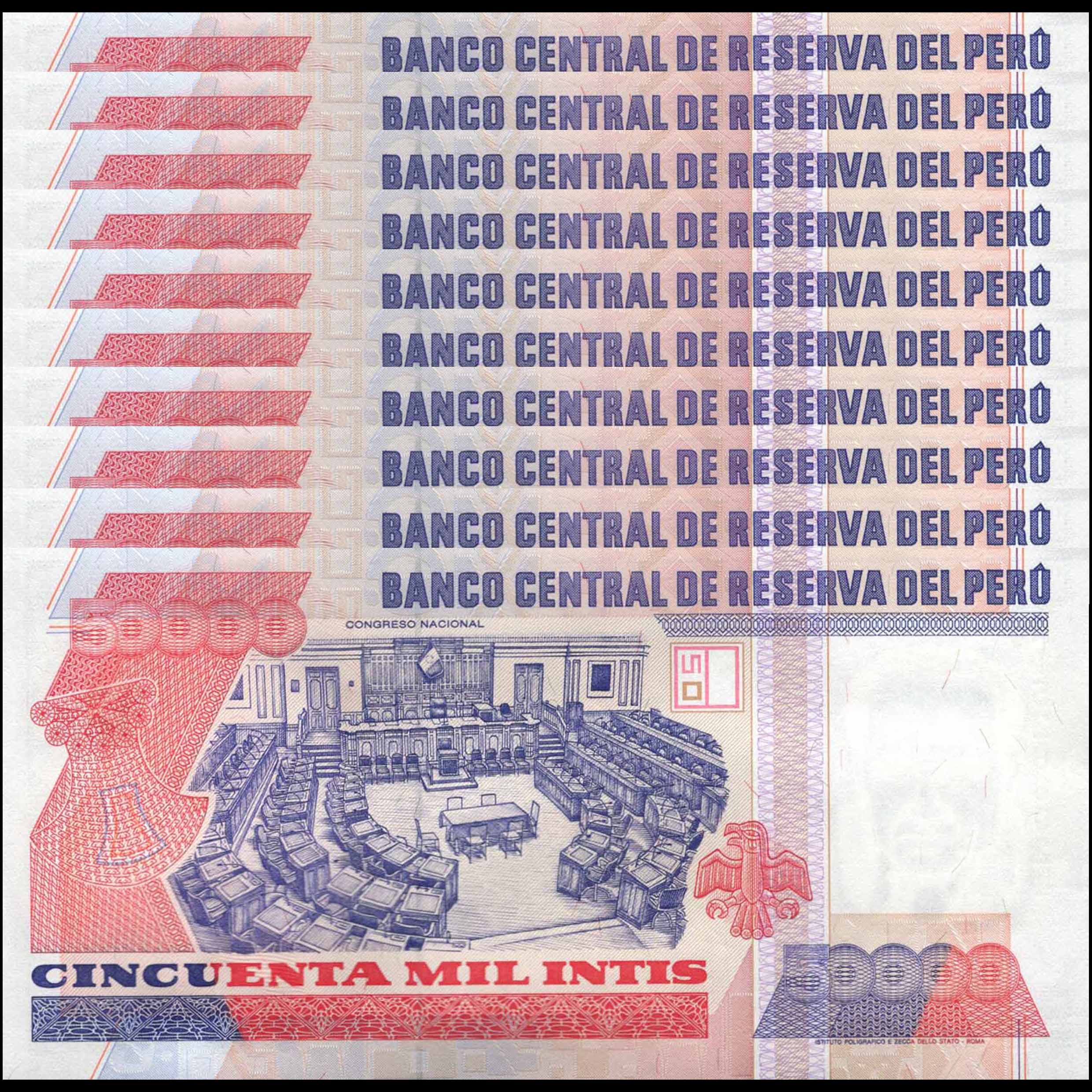 Peru - 50.000 Intis 1988 - Pick # 142 - Set 10 PCS