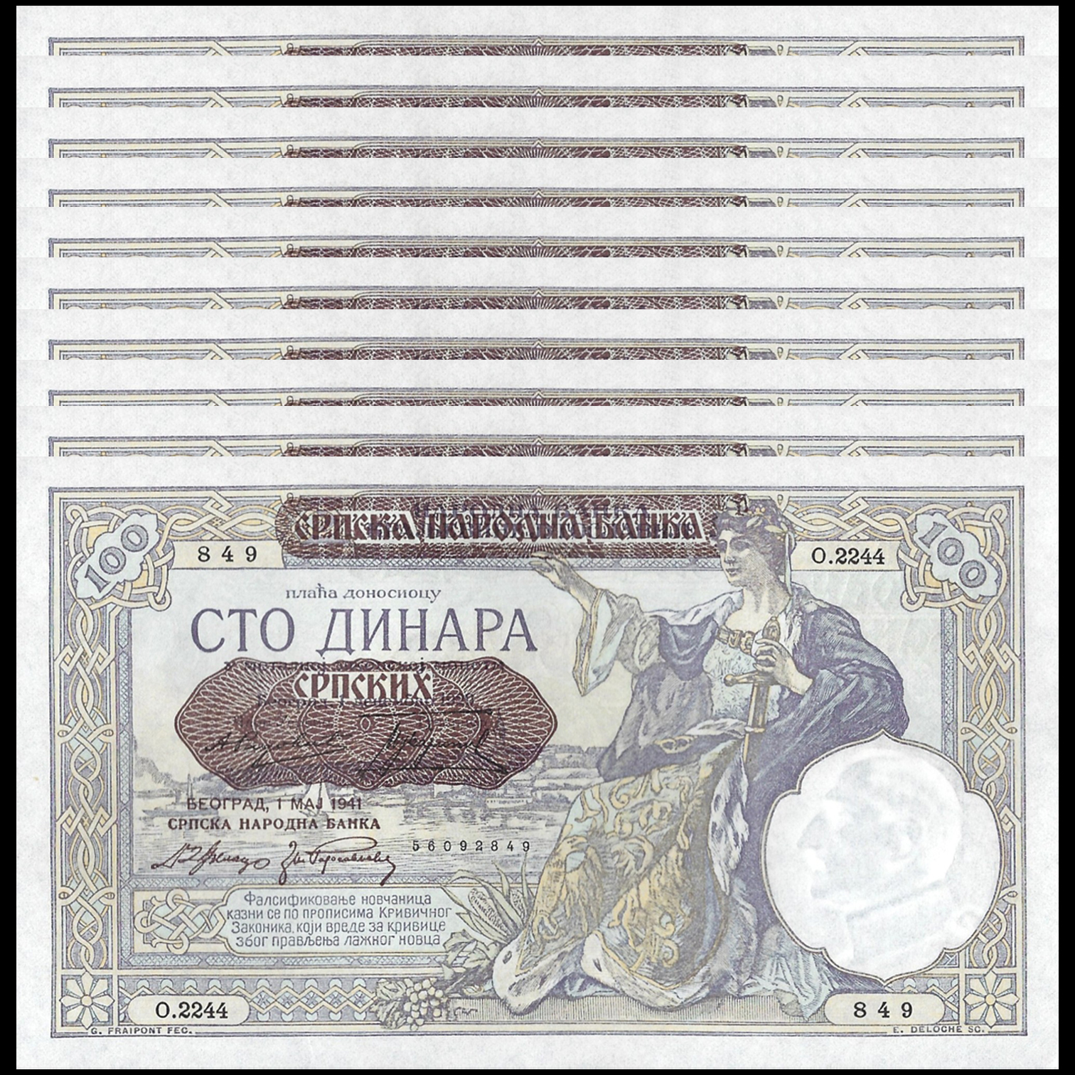 Serbia - 100 Dinara 1941 - Pick # 23 - Set 10 PCS