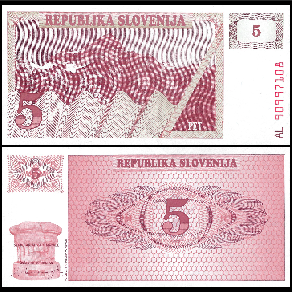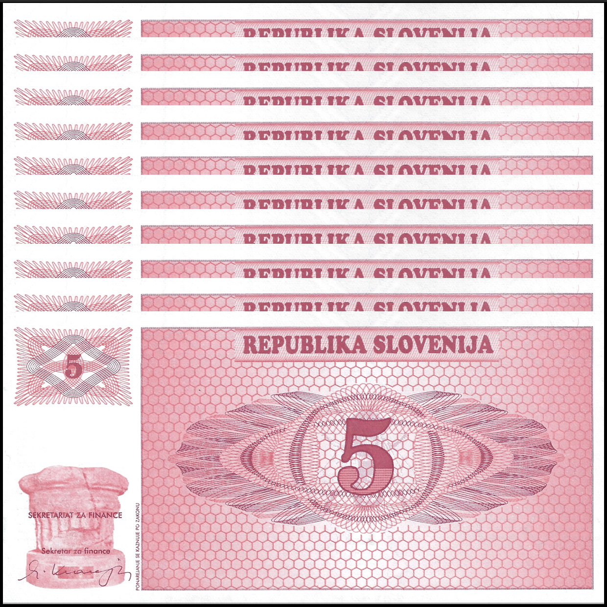 Slovenia - 5 Tolarjev 1990 - Pick- 3 - Set 10 PCS
