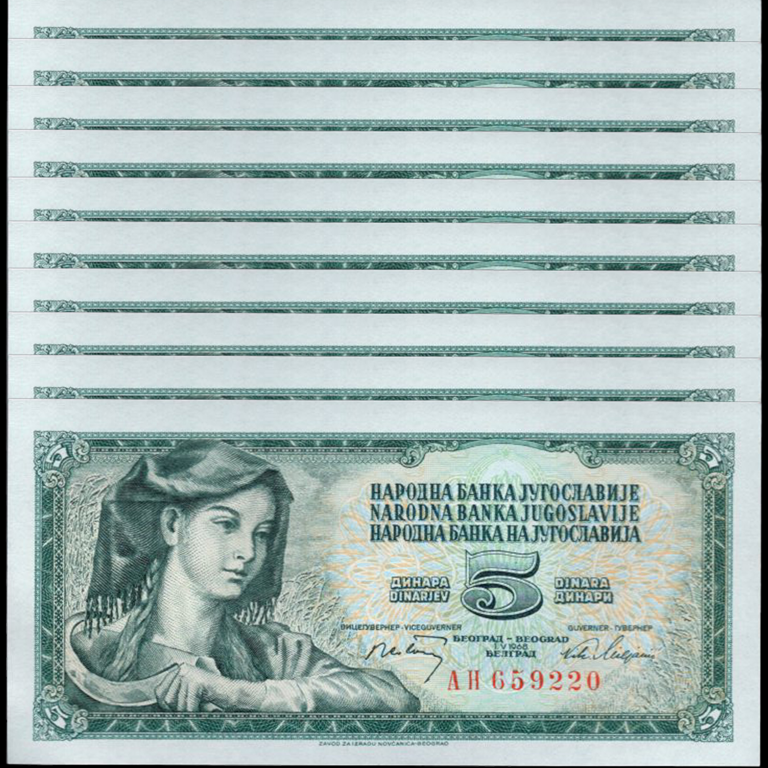 Yugoslavia - 5 Dinara 1968 - Pick # 81a - Set 10 PCS