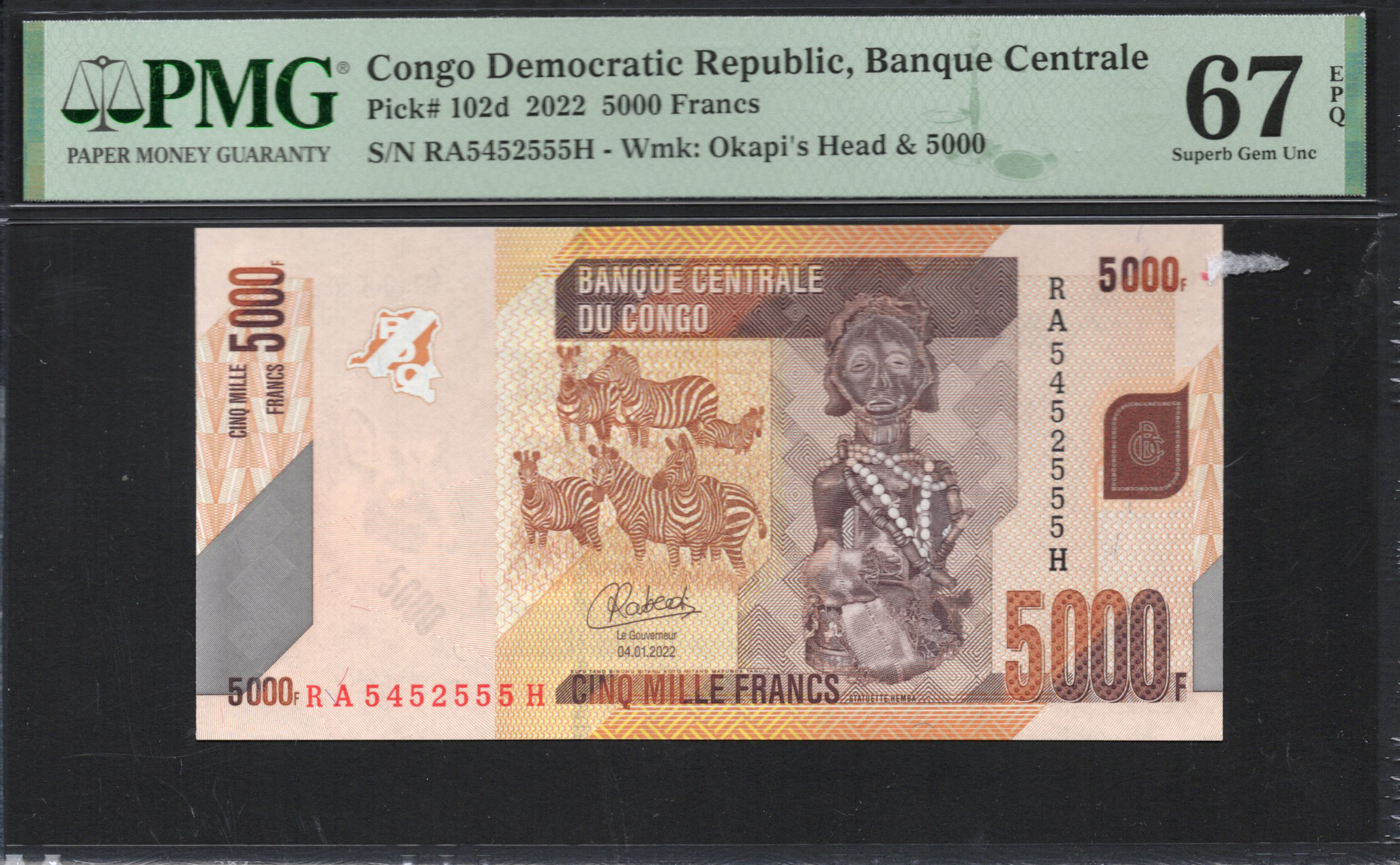 Congo Democratic Republic - 5000 Francs 2022 - Pick # 102d - PMG 67 EPQ
