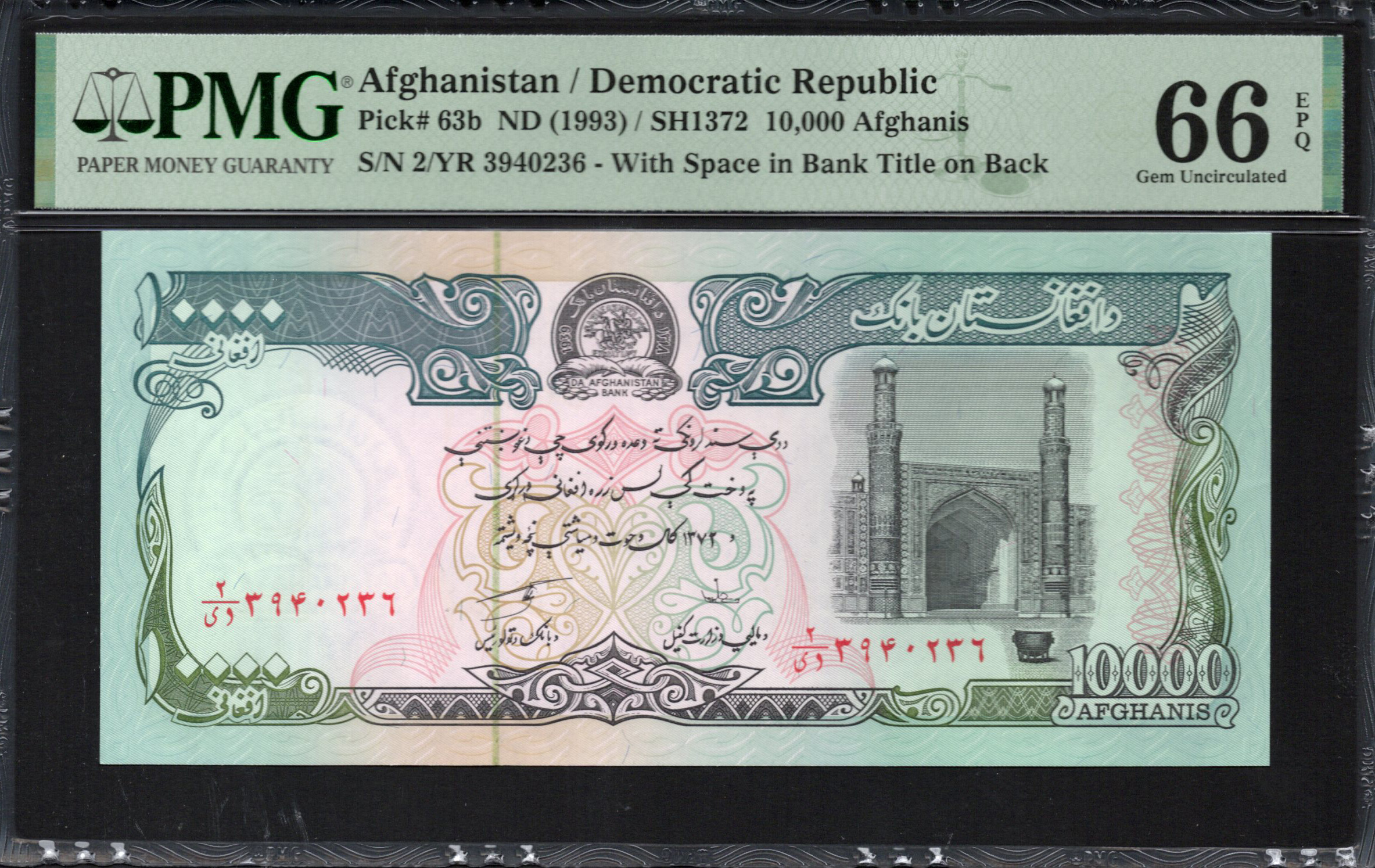 Afghanistan - 10.000 Afghanis 1993 - Pick # 63b - PMG 66 EPQ