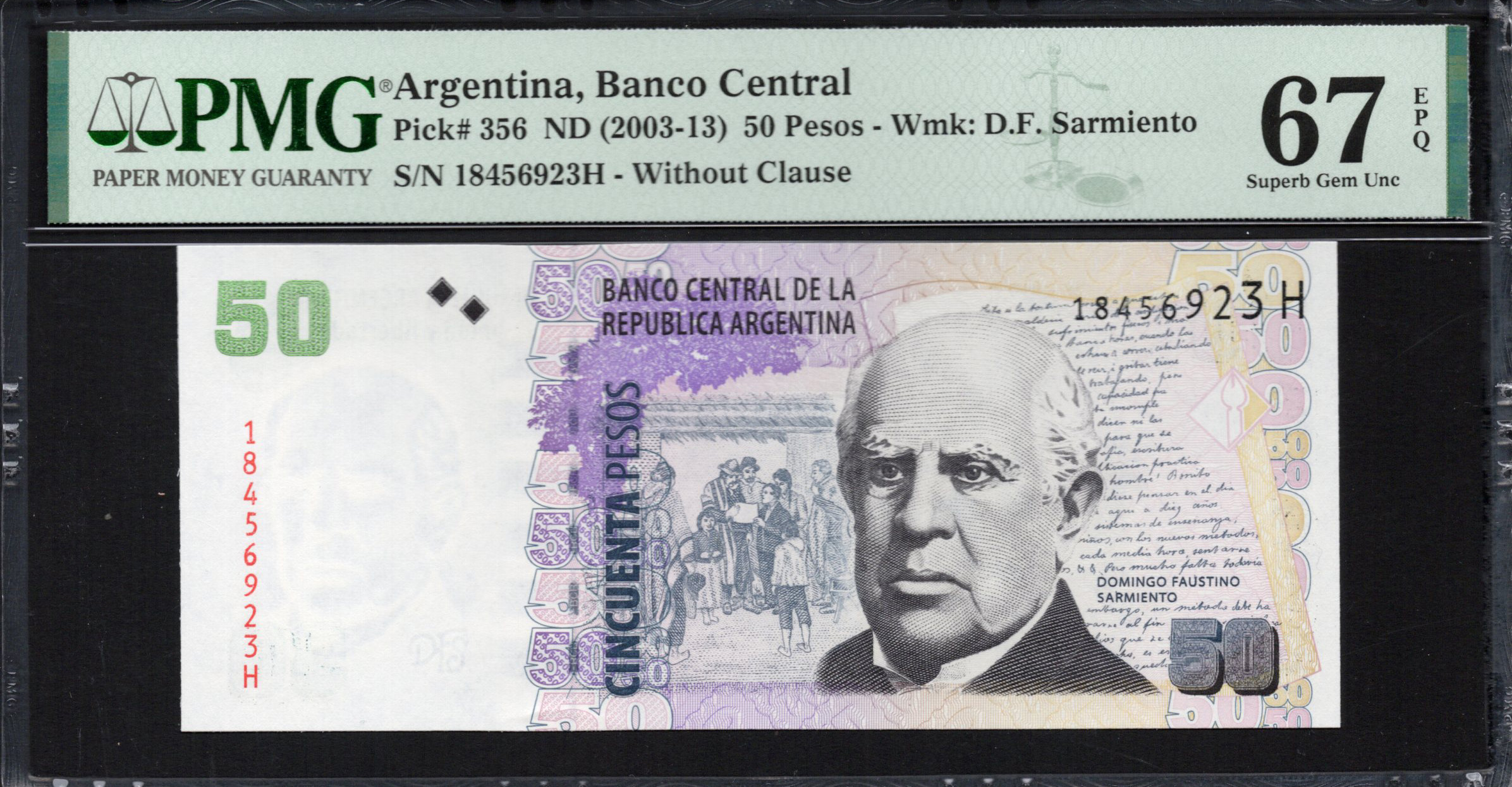 Argentina - 50 Pesos 2003 - Pick # 356 - PMG 67 EPQ