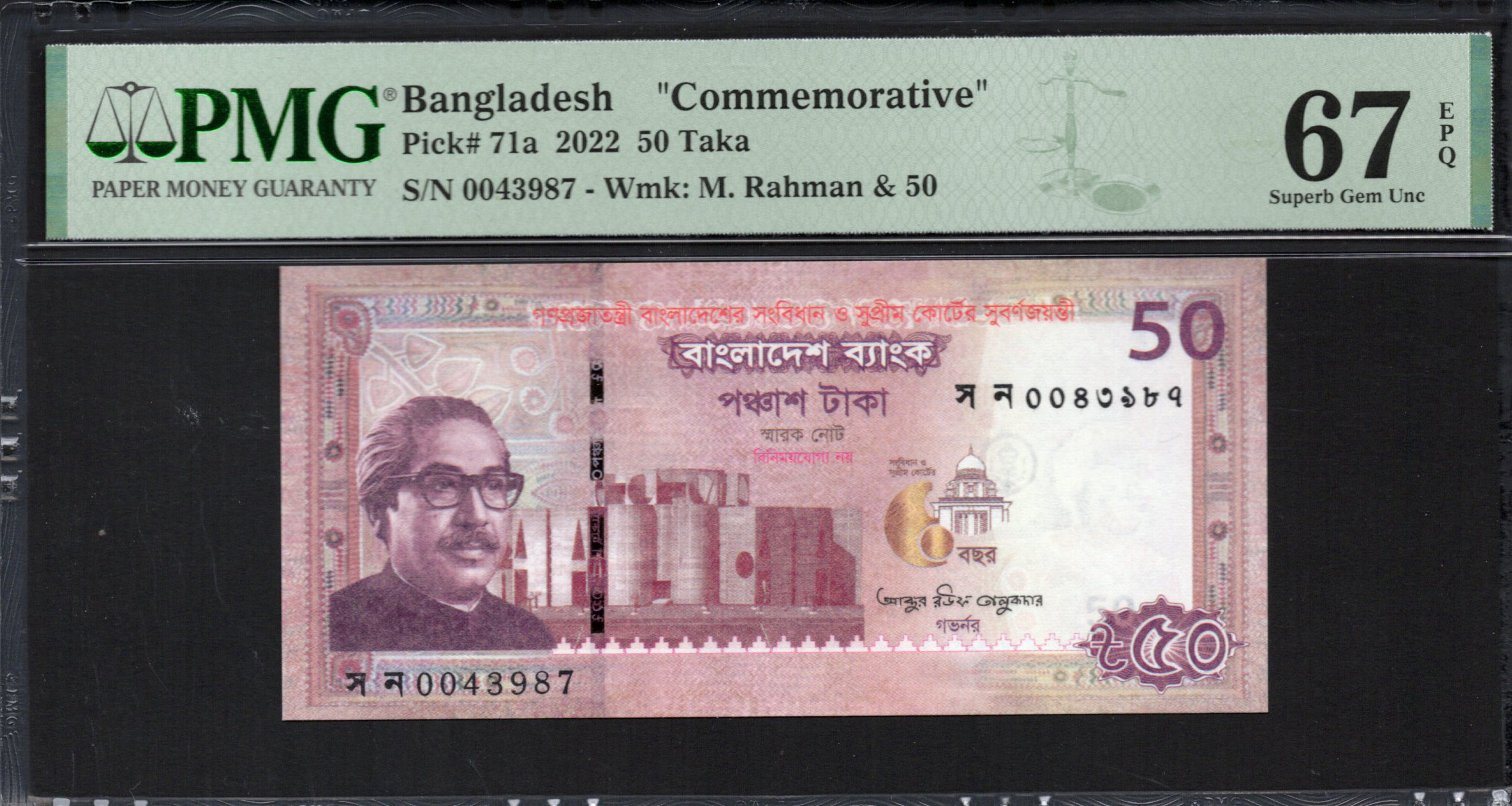 Bangladesh - 50 Taka 2022 - Pick # 71a - PMG 67 EPQ