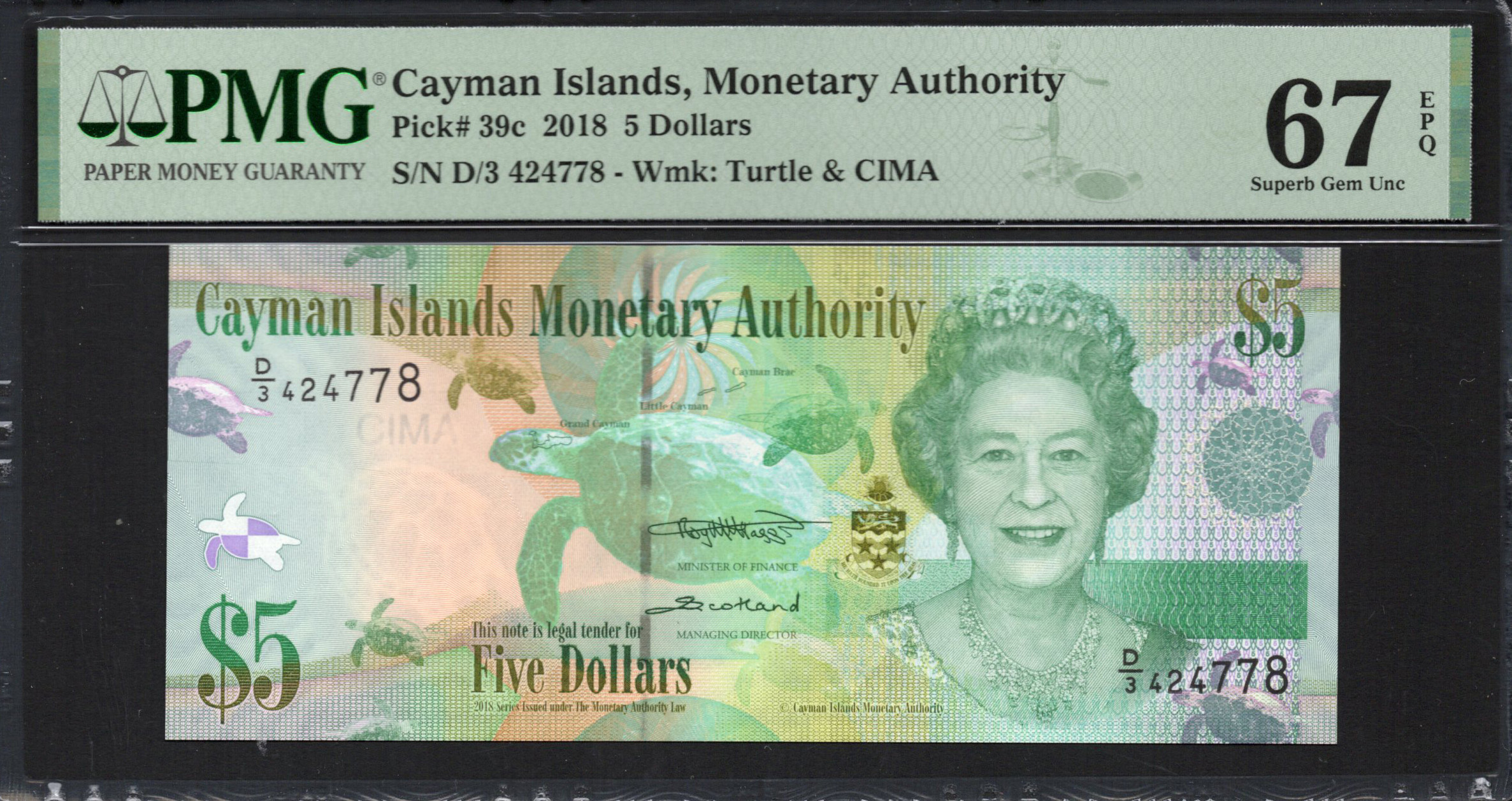 Cayman Islands - 5 Dollars 2018 - Pick # 39c - PMG 67 EPQ
