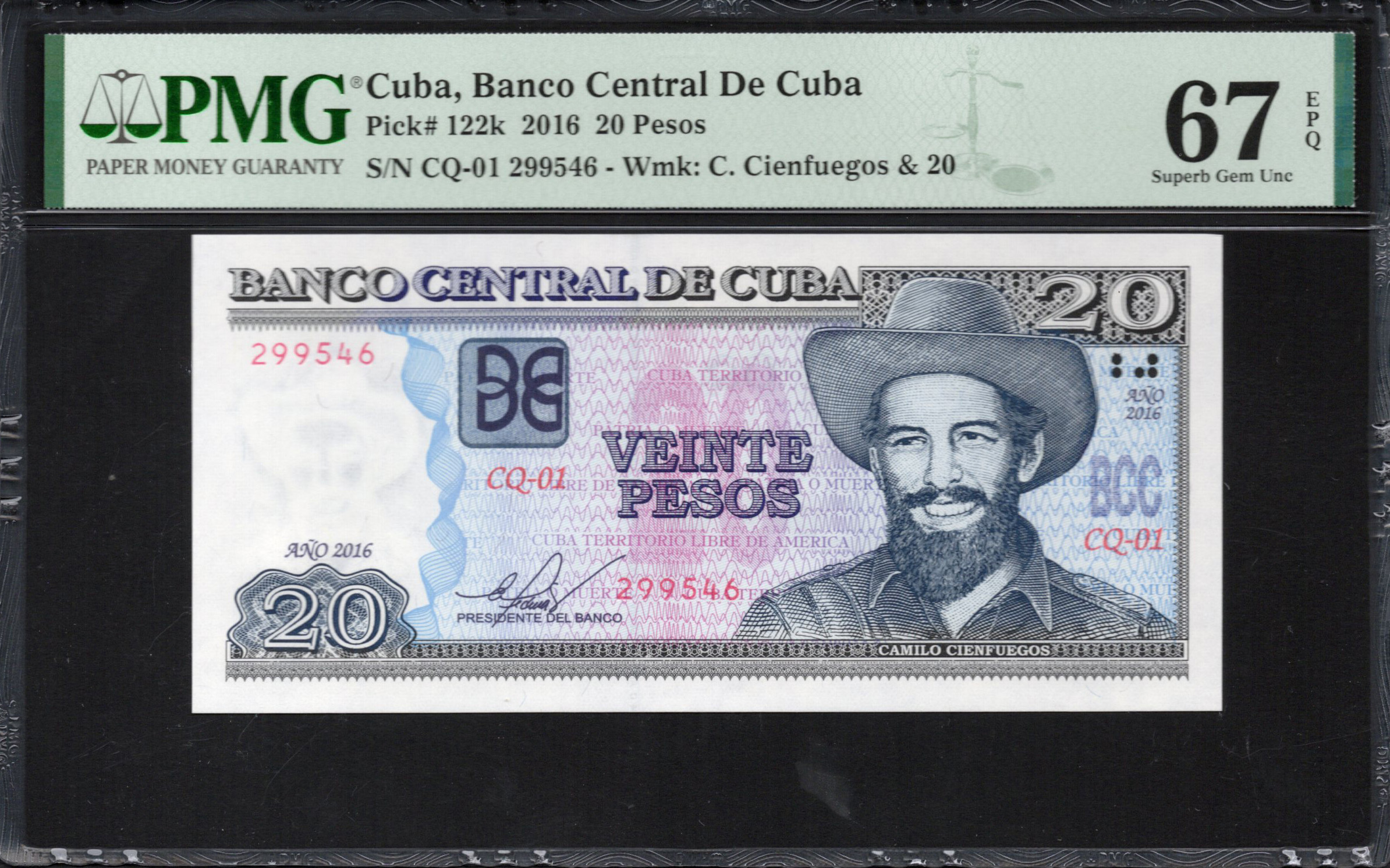 Cuba - 20 Pesos 2016 - Pick # 122k - PMG 67 EPQ
