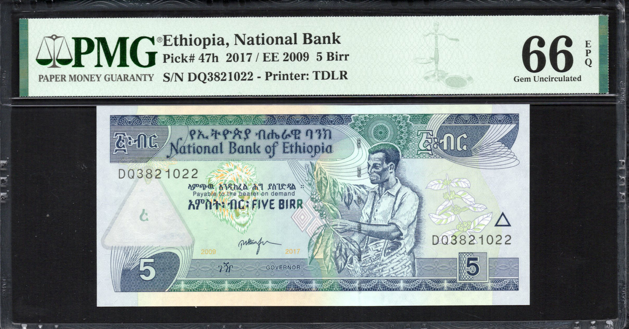Ethiopia - 5 Birr 2017 - Pick # 47h - PMG 66 EPQ