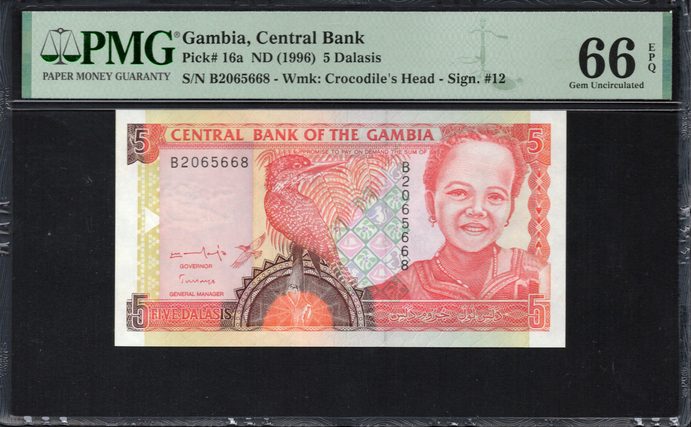 Gambia - 5 Dalasis 1996 - Pick # 16a - PMG 66 EPQ