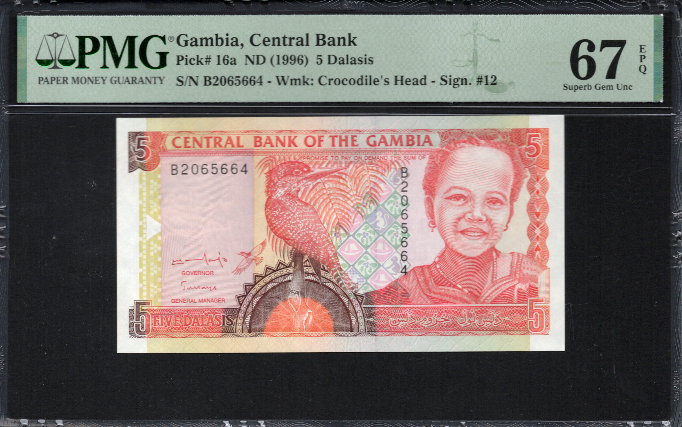 Gambia - 5 Dalasis 1996 - Pick # 16a - PMG 67 EPQ