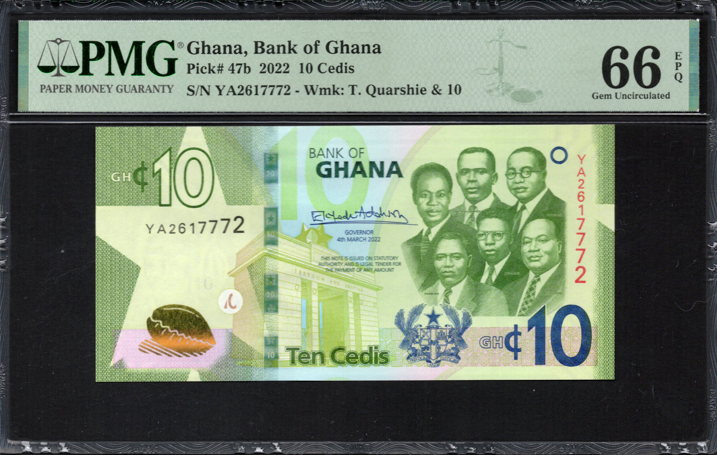 Ghana - 10 Cedis 2022 - Pick # 47b - PMG 66 EPQ