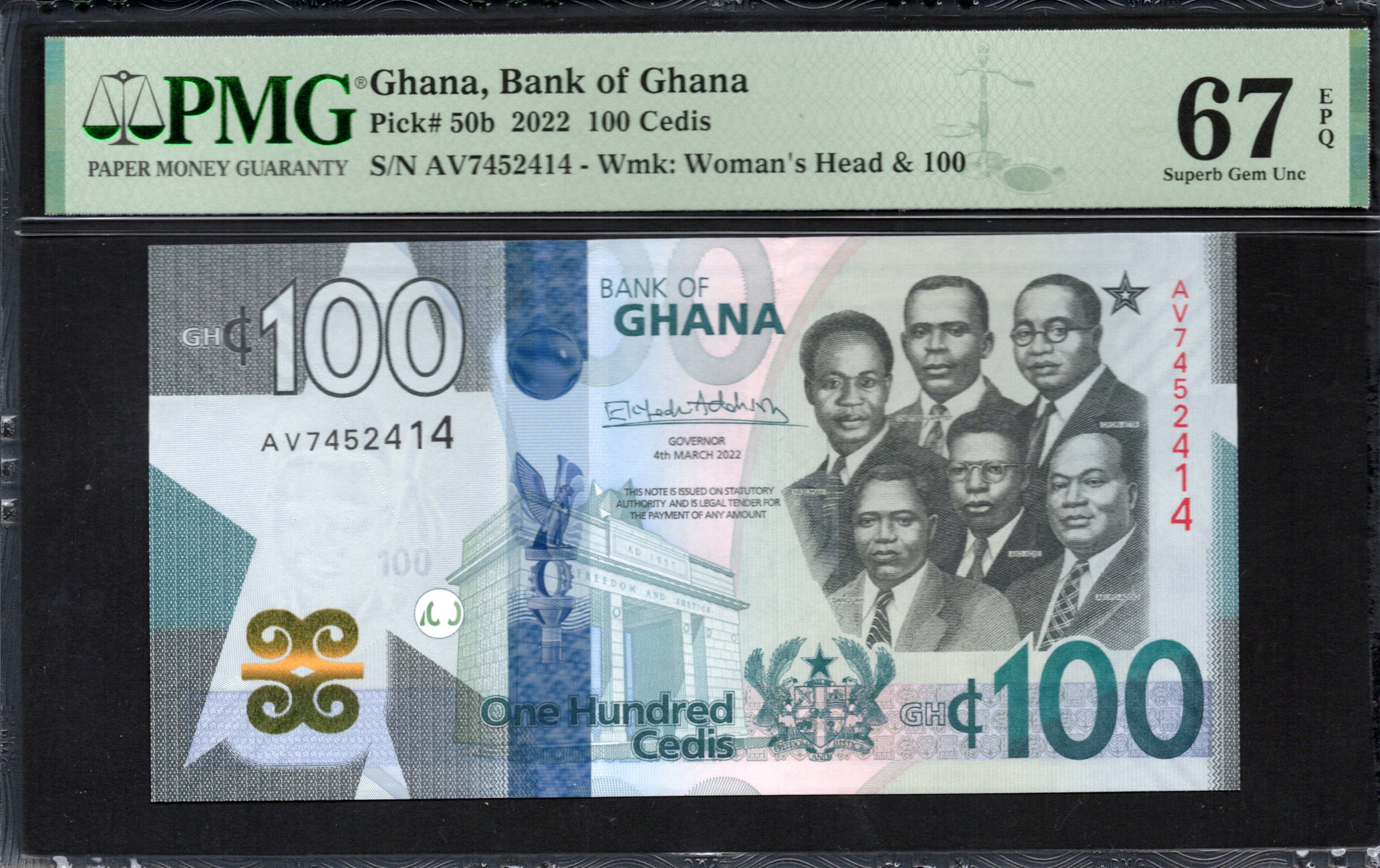 Ghana - 100 Cedis 2022 - Pick # 50b - PMG 67 EPQ