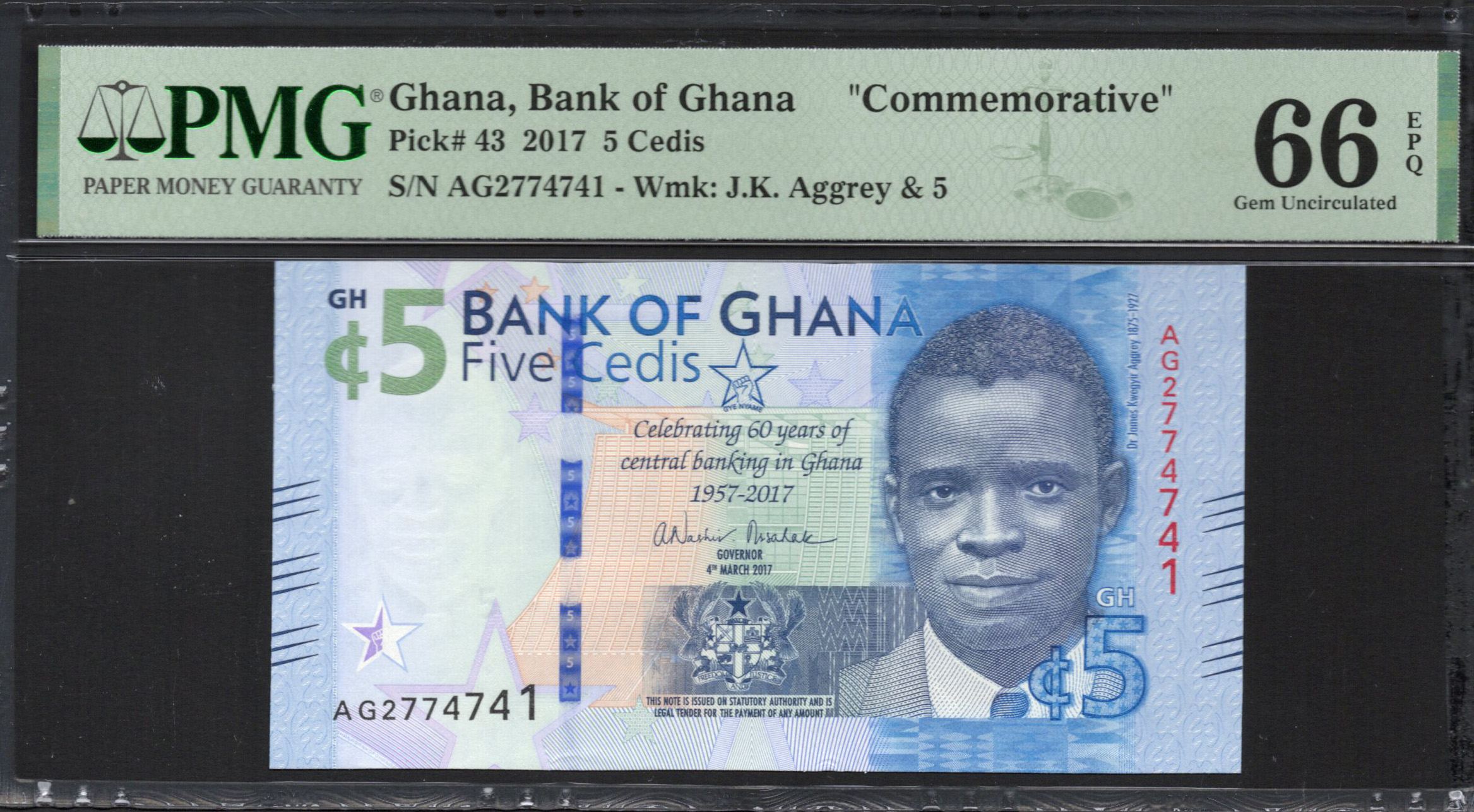 Ghana - 5 Cedis 2017 - Pick # 43 - PMG 66 EPQ