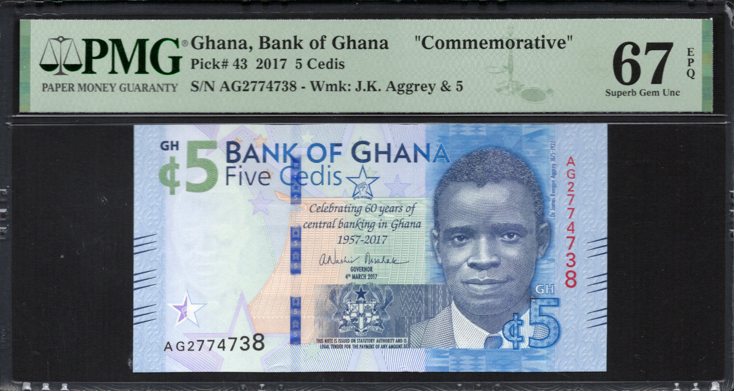Ghana - 5 Cedis 2017 - Pick # 43 - PMG 67 EPQ