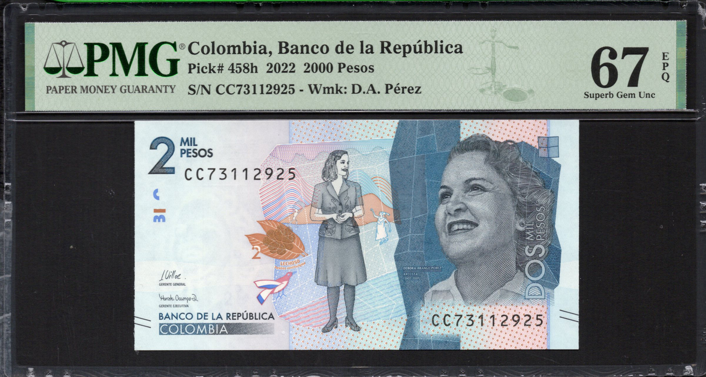 The 2000 Pesos banknote from Colombia showcases striking visual elements and a rich cultural narrative. Issued by the Banco de la República, this denomination features intricate designs combining modern artistry with traditional symbols. The note is particularly noted for its vivid colors and representational imagery that reflects the country's heritage. The use of safety features, including a watermark and microprinting, enhances its authenticity and security, ensuring it meets international standards.