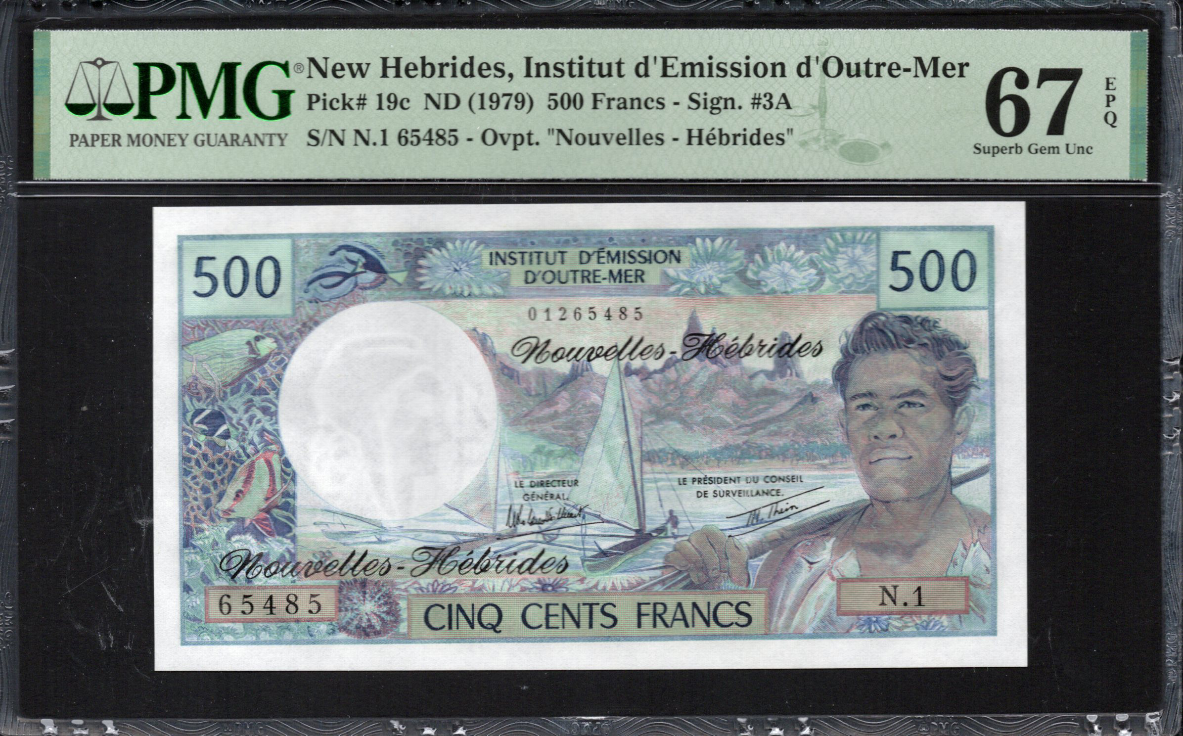 The New Hebrides 500 Francs banknote, issued in 1979, showcases the vibrant culture and natural beauty of the islands. It features striking visuals, including marine life and a local fisherman. The note is notable for its artistic elements and best practices in anti-counterfeiting features.