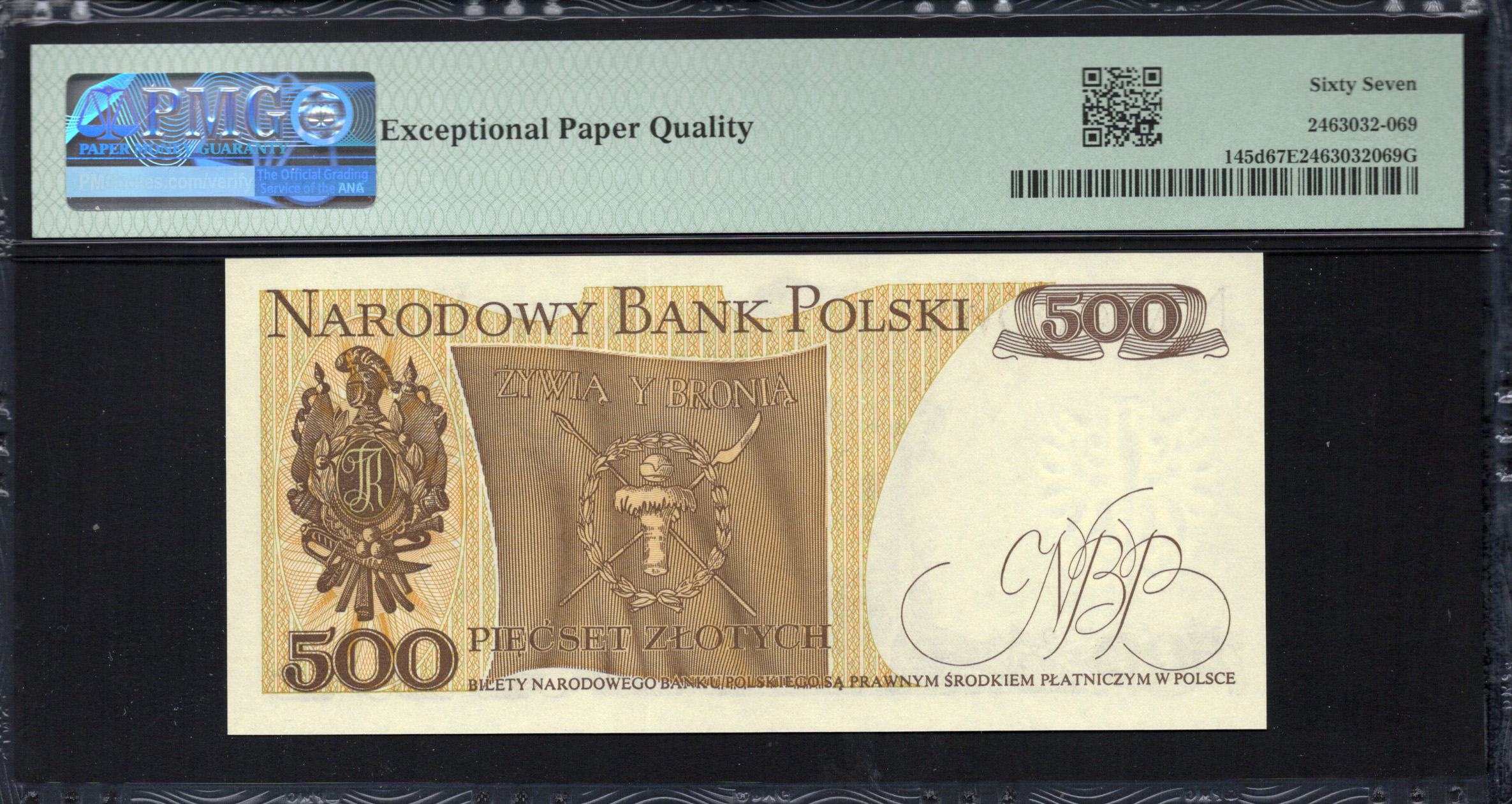 The reverse side of the banknote showcases a regal double-headed eagle, representing Poland's national emblem. Surrounding this emblem are ornate decorations that reflect a sense of prestige and stability. The denomination '500' is highlighted in large, bold numbers, ensuring clarity for the viewer. The intricate patterns in the background contribute to the artistic complexity, while microprint elements can be observed near the borders, which are designed to thwart counterfeiting efforts. Overall, the back of the note harmonizes with the front, elevating its design to a cherished piece of national currency.