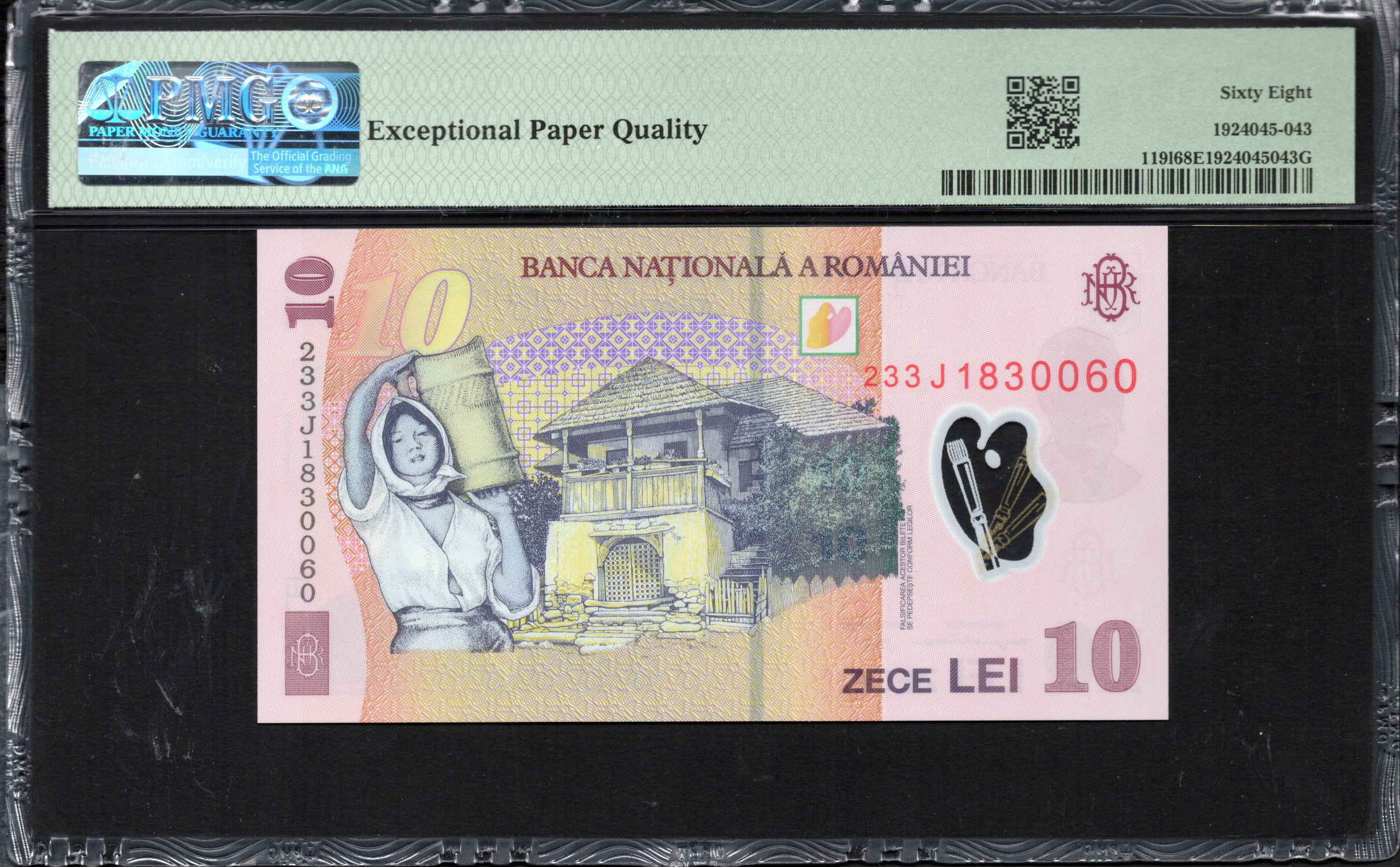 This analysis focuses on the 10 Lei banknote from Romania, featuring notable artistic and security elements. The front side highlights the image of Romanian figure Nicolae Grigorescu, alongside intricate floral patterns and the denomination clearly marked. Colors blend harmoniously, showcasing shades of pink and green that exemplify modern banknote design. The back side typically contains complementary imagery and additional security features.