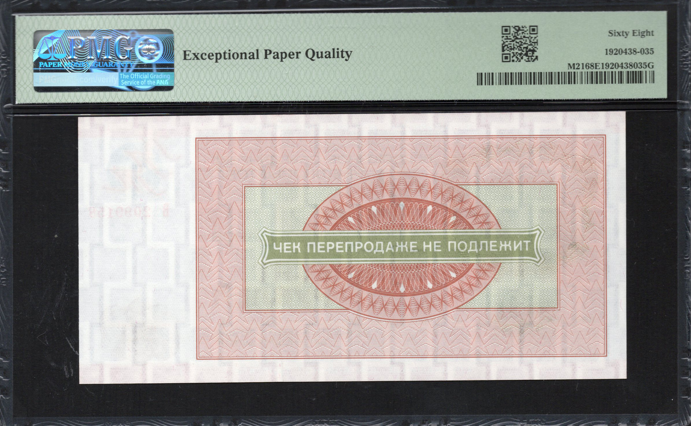 The reverse side complements the front with additional decorative elements and features more detailed textile-like designs. It provides essential information about its intended use in military trade. The background includes pastel shades and swirling patterns that enhance the artistic nature of the banknote. The banknote also likely incorporates subtle watermarks and possibly holographic elements, marking it as secure and sophisticated. Overall, the reverse maintains a harmonious color scheme that reflects the note's overall design integrity.