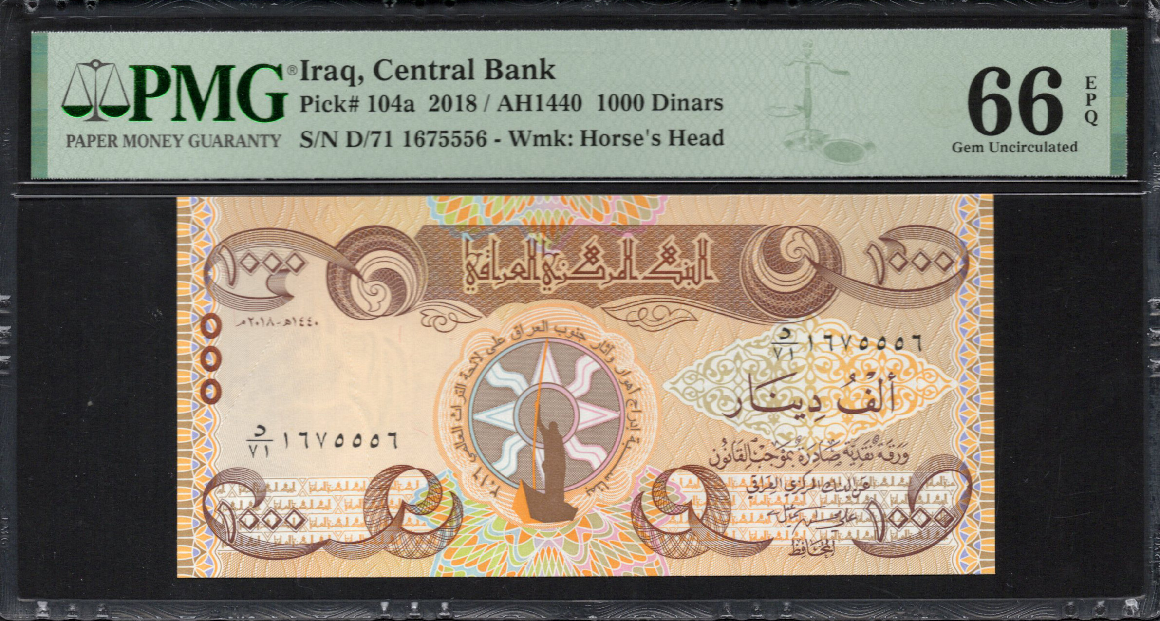Iraq - 1000 Dinars 2018 - Pick # 104a - PMG 66 EPQ