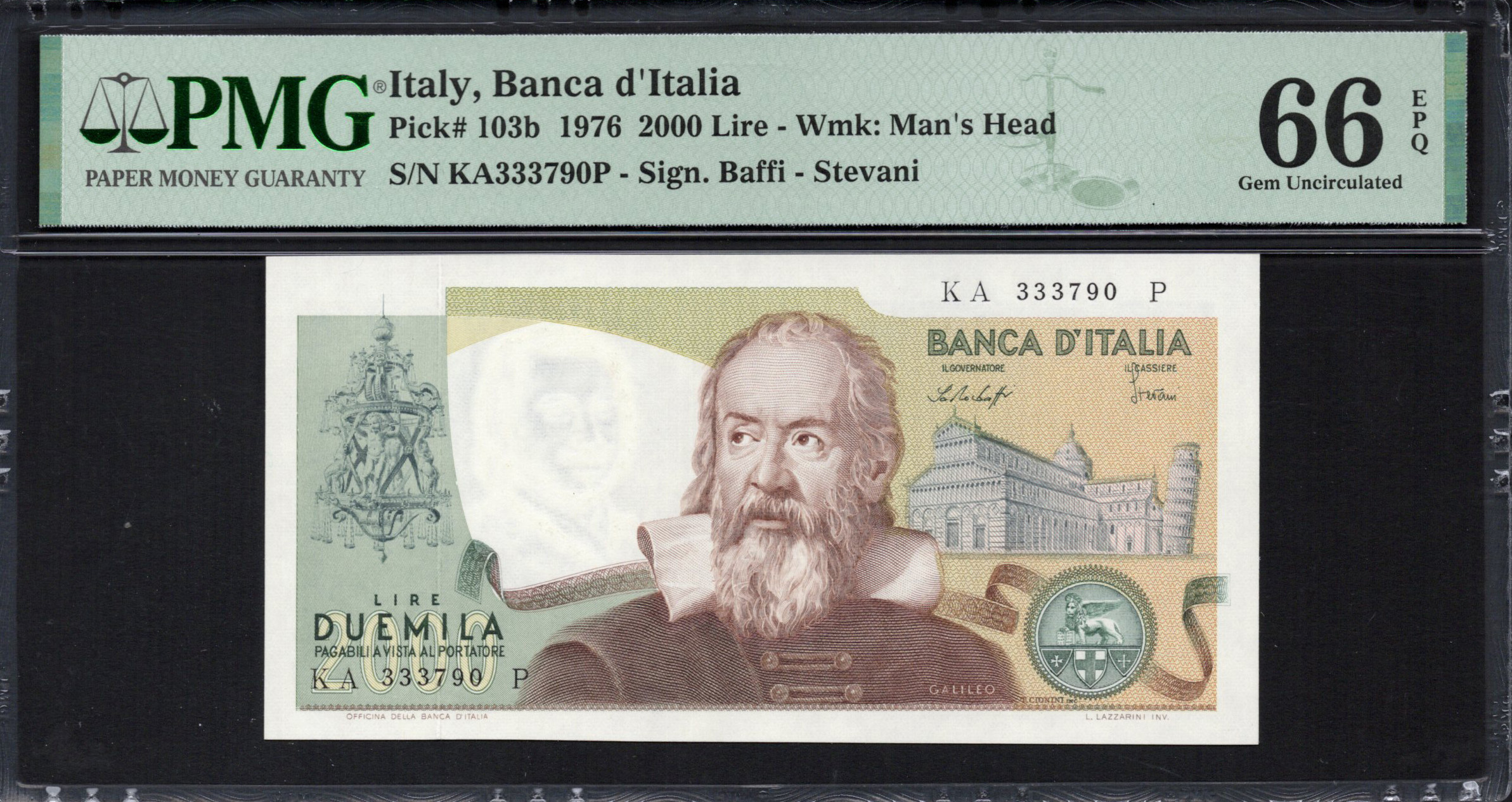 Italy - 2000 Lire 1976 - Pick # 103b - PMG 66 EPQ