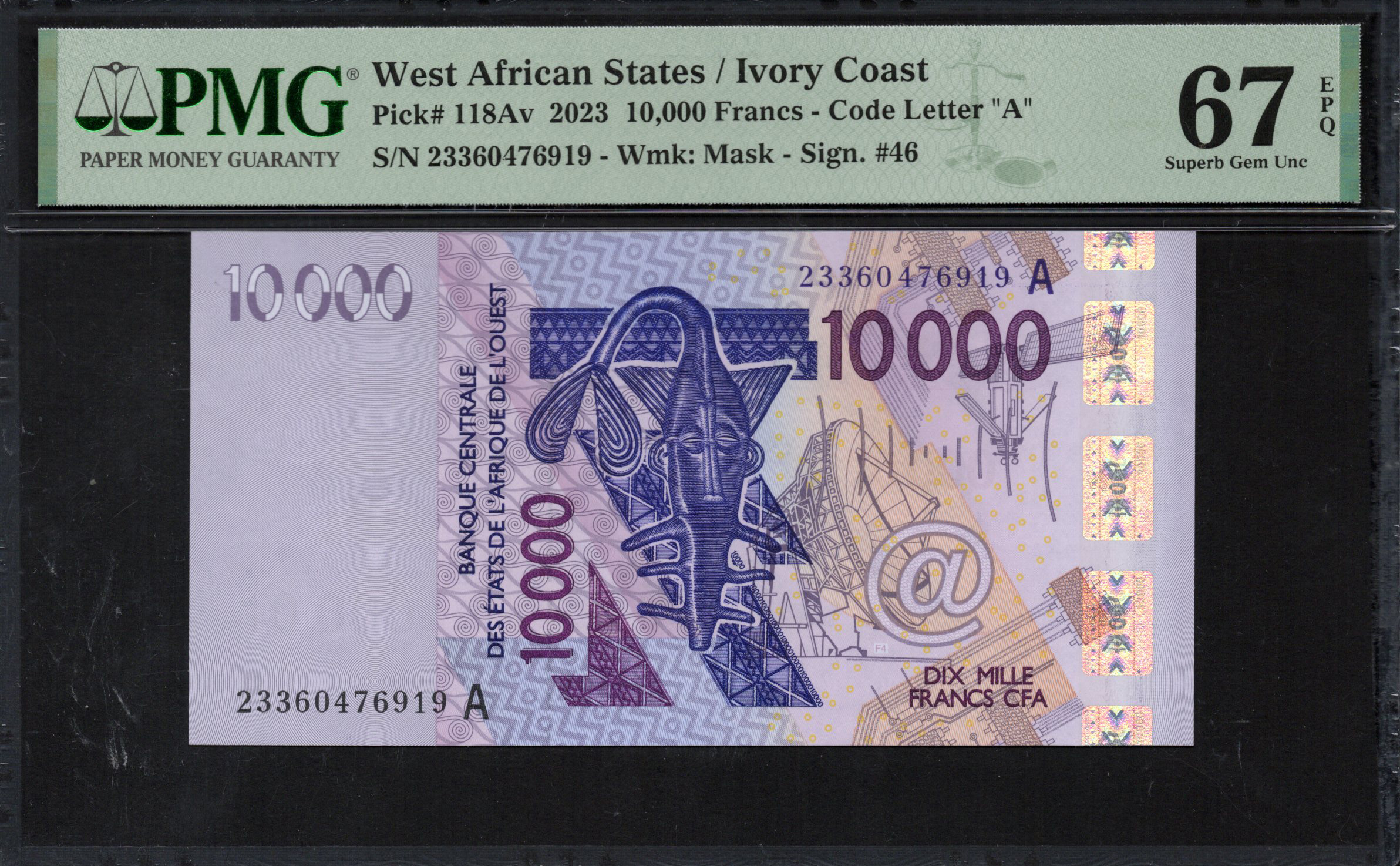 Ivory Coast - 10.000 Francs 2023 - Pick # 118Av - PMG 67 EPQ