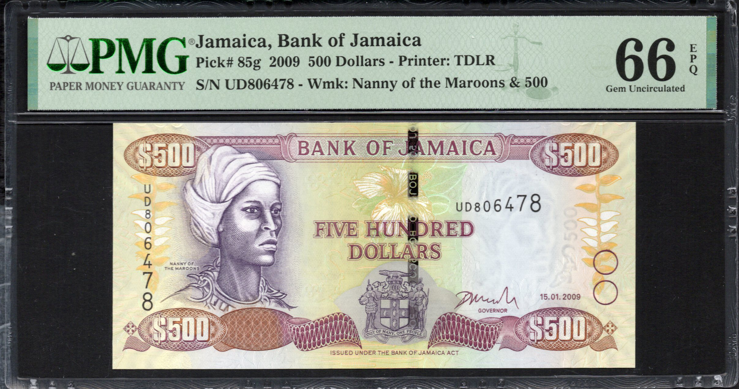 Jamaica - 500 Dollars 2009 - Pick # 85g - PMG 66 EPQ