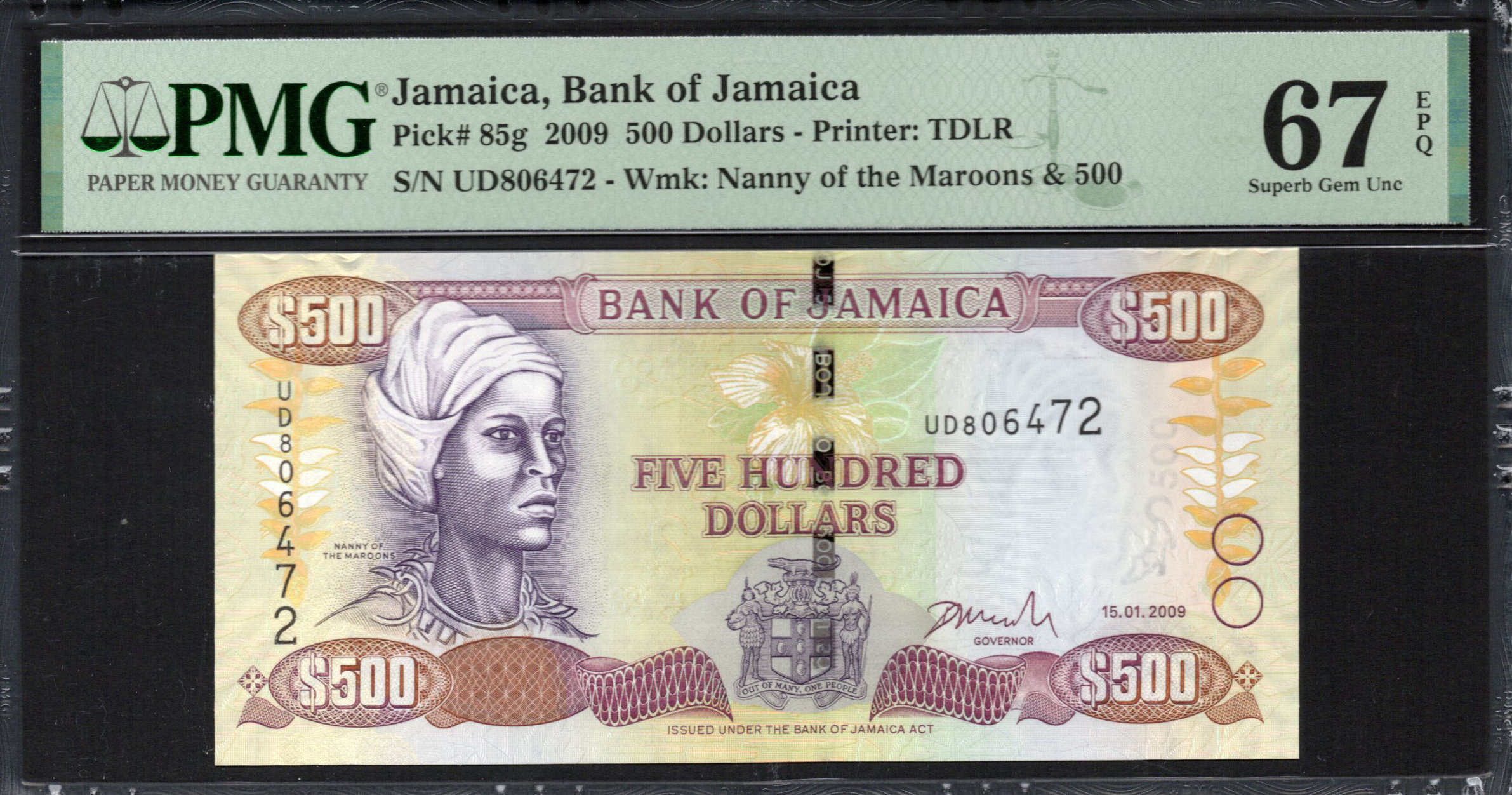 Jamaica - 500 Dollars 2009 - Pick # 85g - PMG 67 EPQ