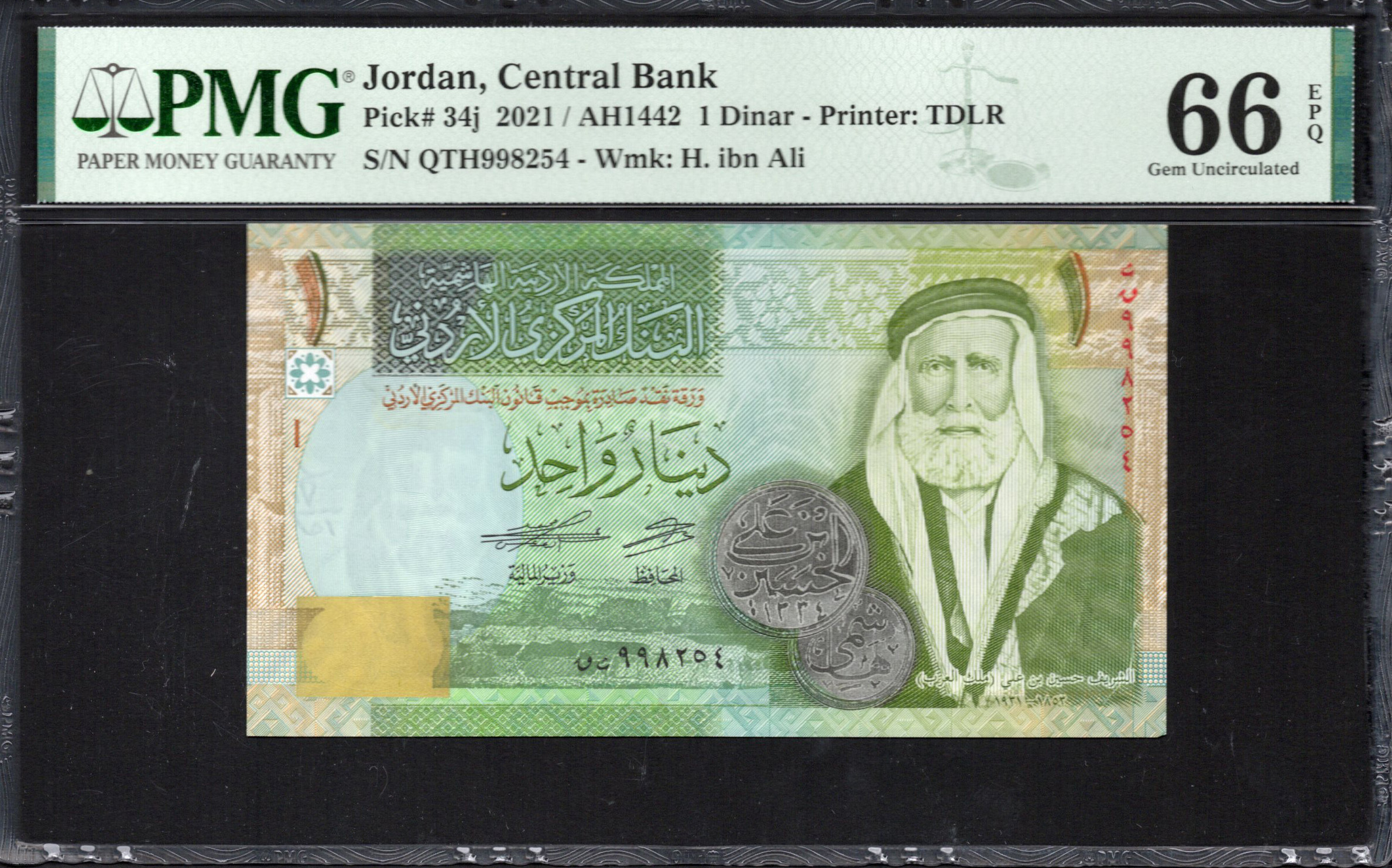 Jordan - 1 Dinar 2021 - Pick # 34j - PMG 66 EPQ