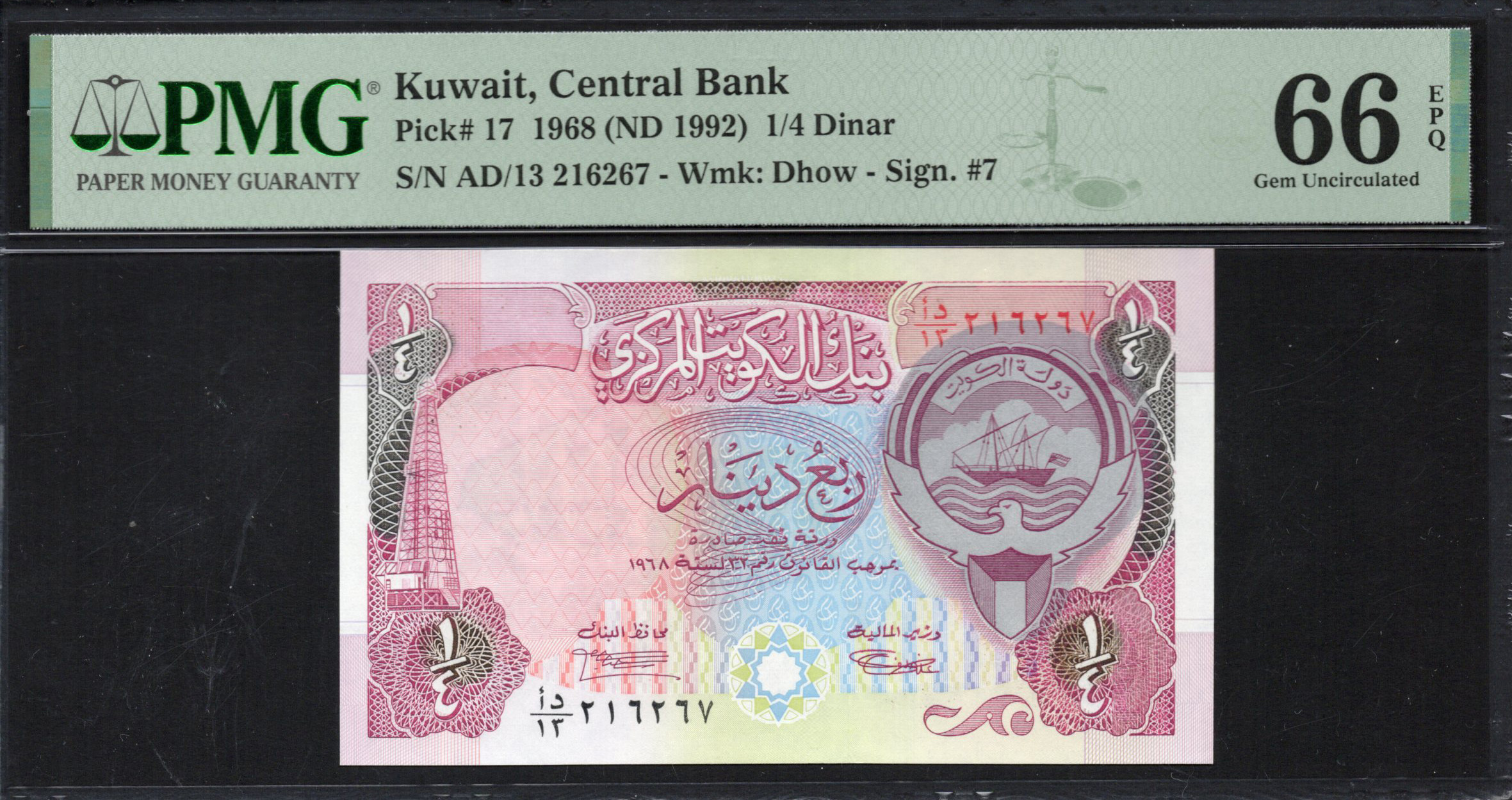 Kuwait - Quarter Dinar 1968 - Pick # 17 - PMG 66 EPQ