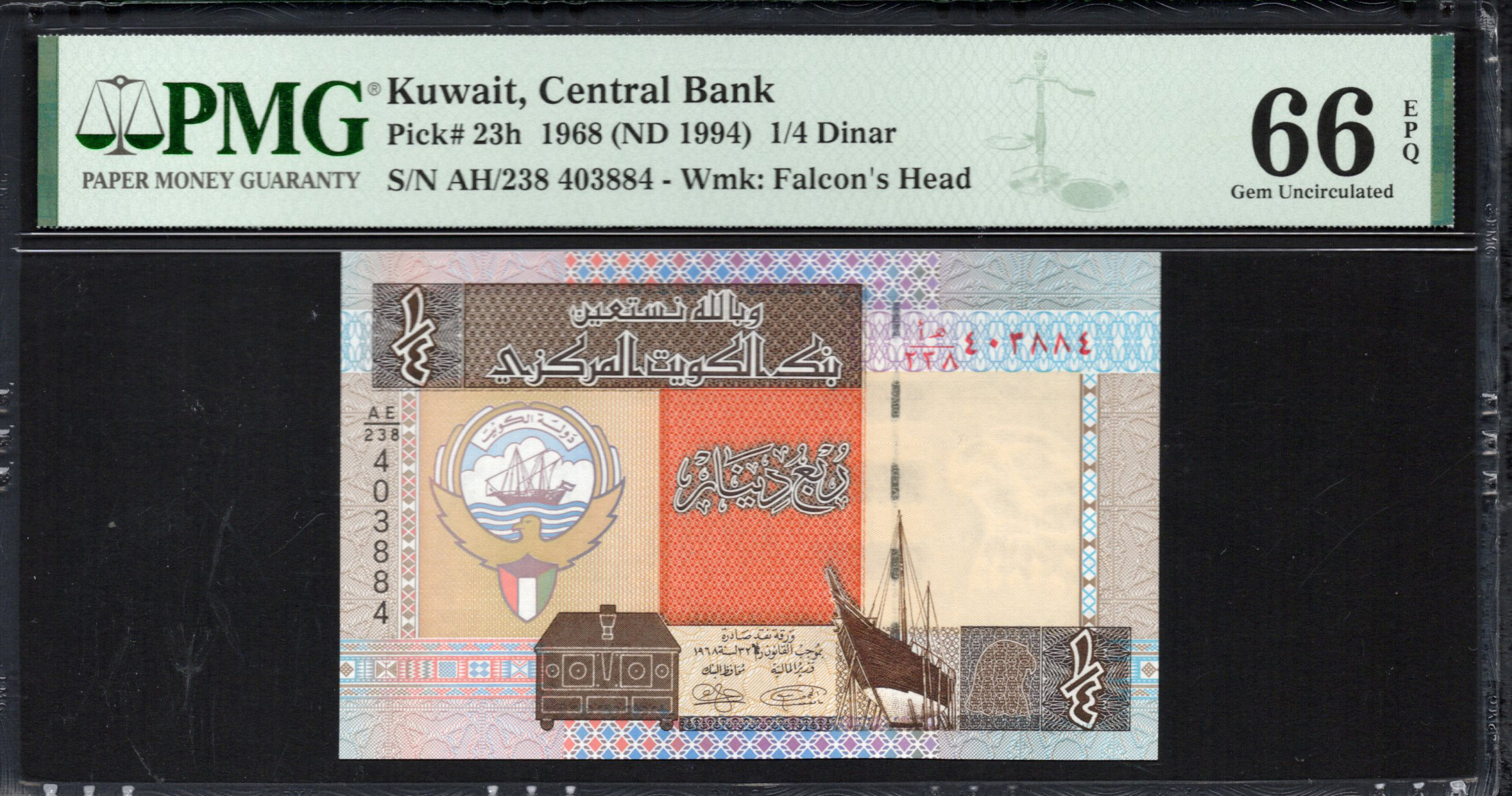 Kuwait - Quarter Dinar 1968 - Pick # 23h - PMG 66 EPQ