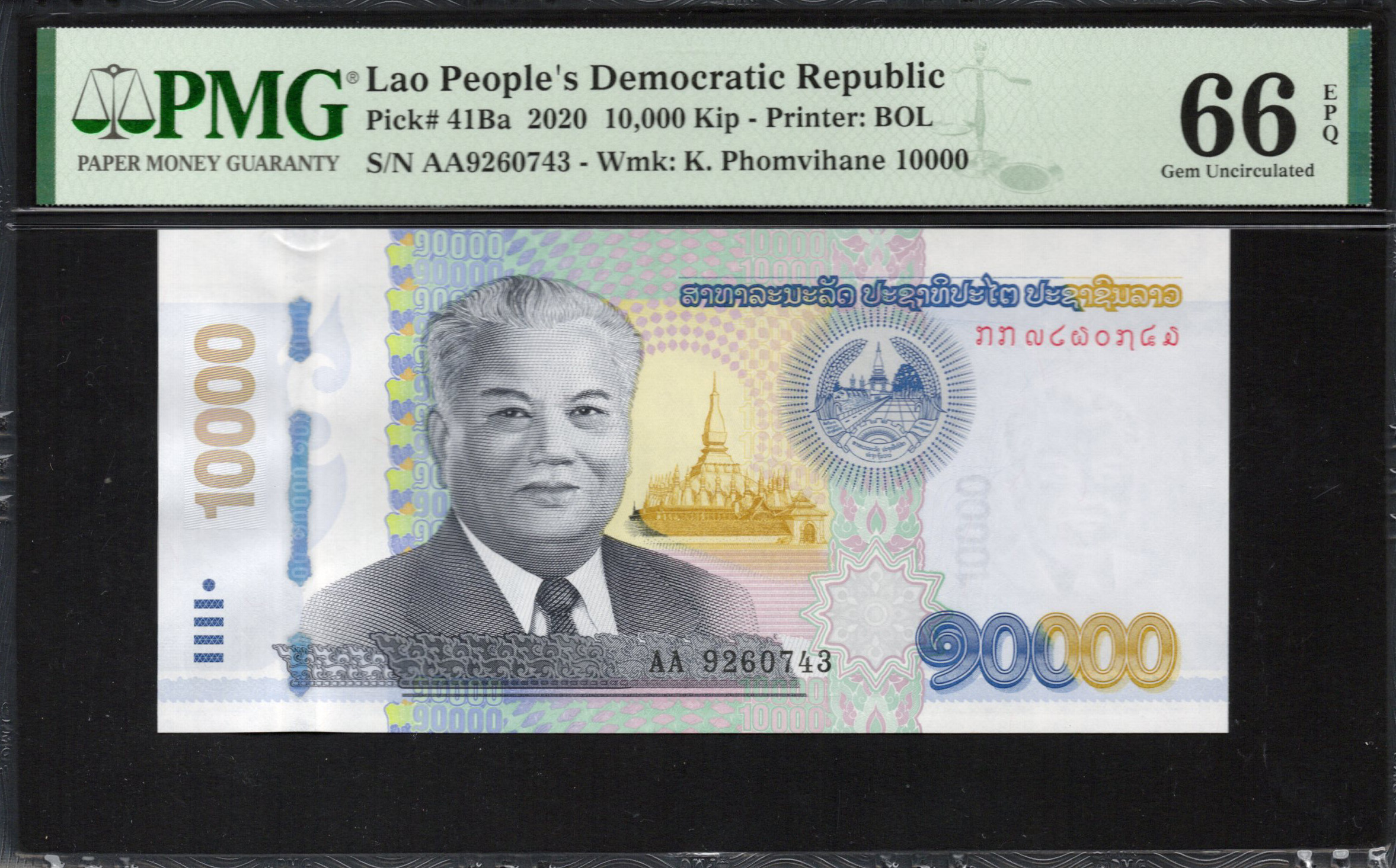 Laos - 10.000 Kip 2020 - Pick # 41Ba - PMG 66 EPQ