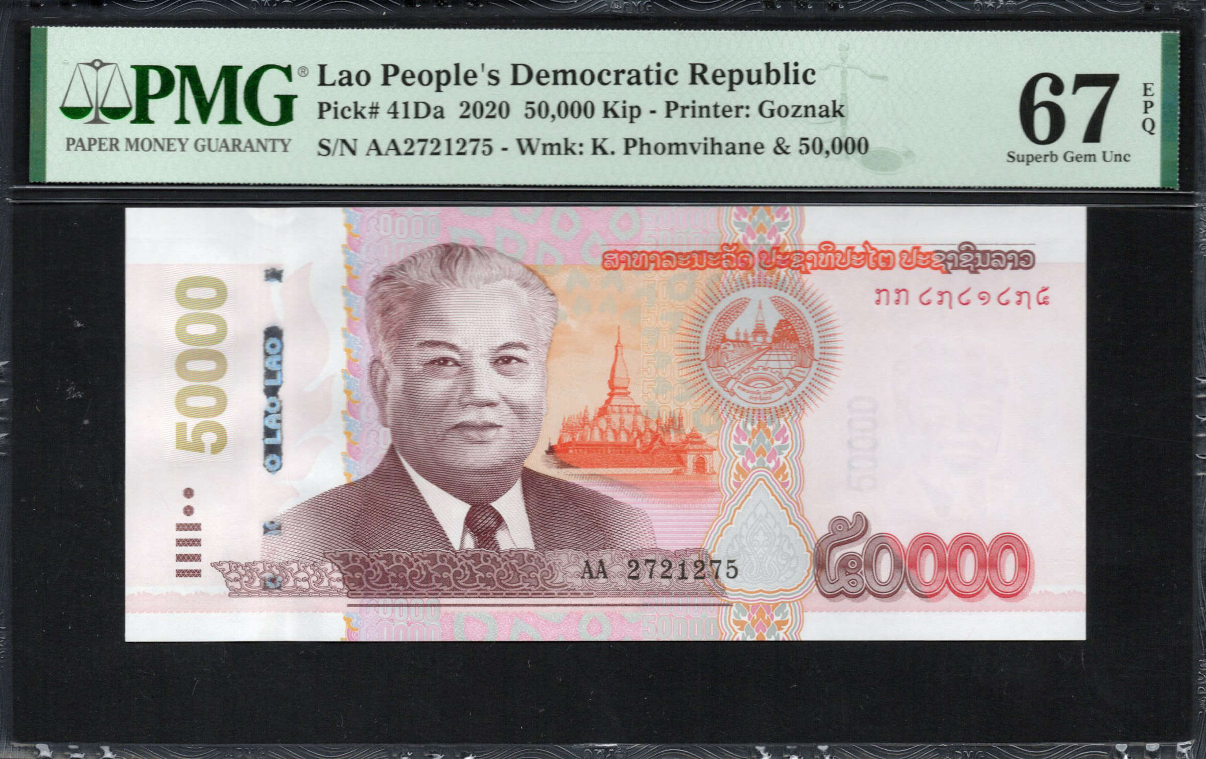 Laos - 50.000 Kip 2020 - Pick # 41Da - PMG 67 EPQ